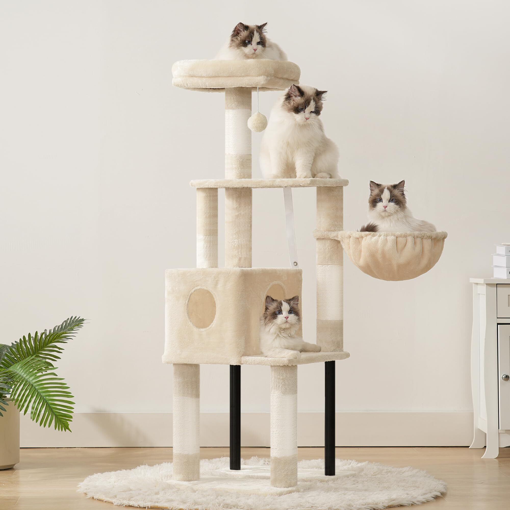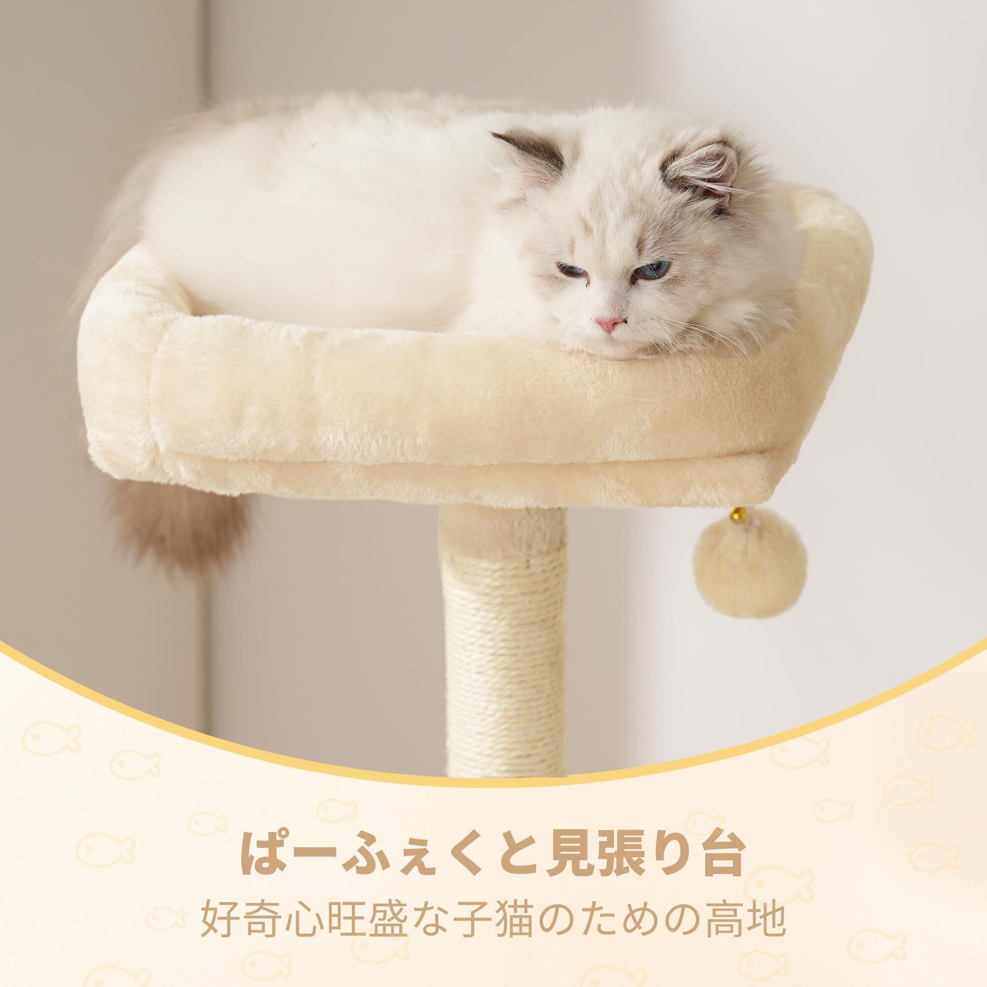Heyblyキャットタワー 超スリム 高さ125cm 省スペース 猫タワー 高い安定性 展望台 柔らかいハンモック 据え置きタイプ シザル麻爪とぎポール ベージュ HCT200SM