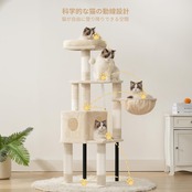 【理想的な構造設計】台形のキャットタワーの設計は科学的で、スペースを取らず、よじ登る時も安定していて、何層ものステップ台と爪とぎ棒があり、猫が毎日飛び跳ねて体を伸ばせるようになっていて、室内での運動不足を効果的に解決し、愛猫の元気と健康を守ります。