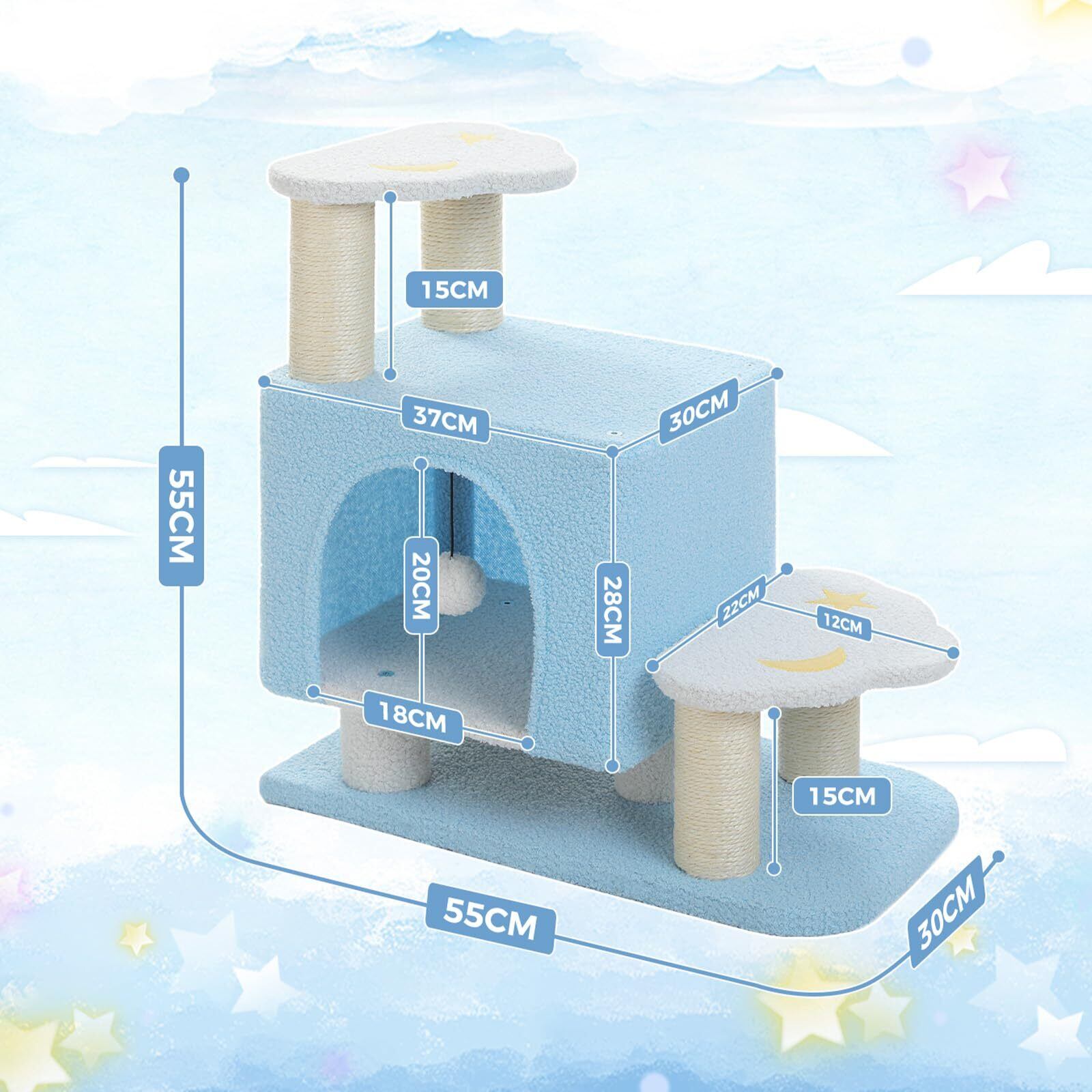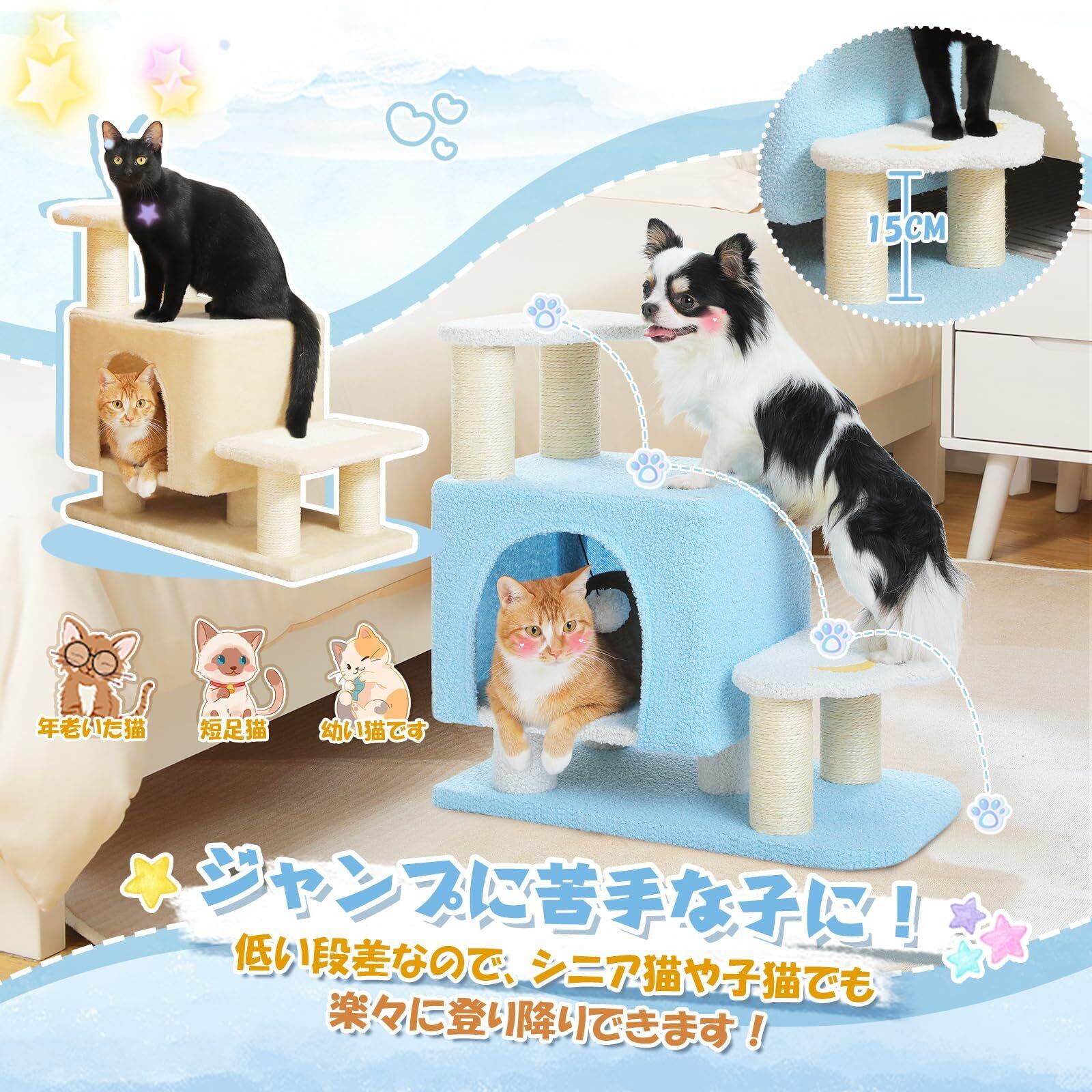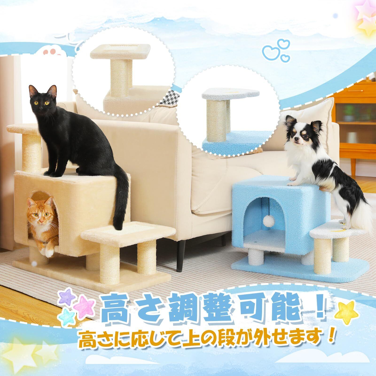PAWZ Road キャットタワー ミニ 低い 犬 ペット 階段 猫 ステップ 猫 爪研ぎ きゃっとたわー おしゃれ スリム キャット 階段 踏み台 可愛 雲 猫 ベッド 人気 子猫 犬 シニア 老猫 据え置き 省スペース 組立簡単 安定 - 高さ55cm ベージュ
