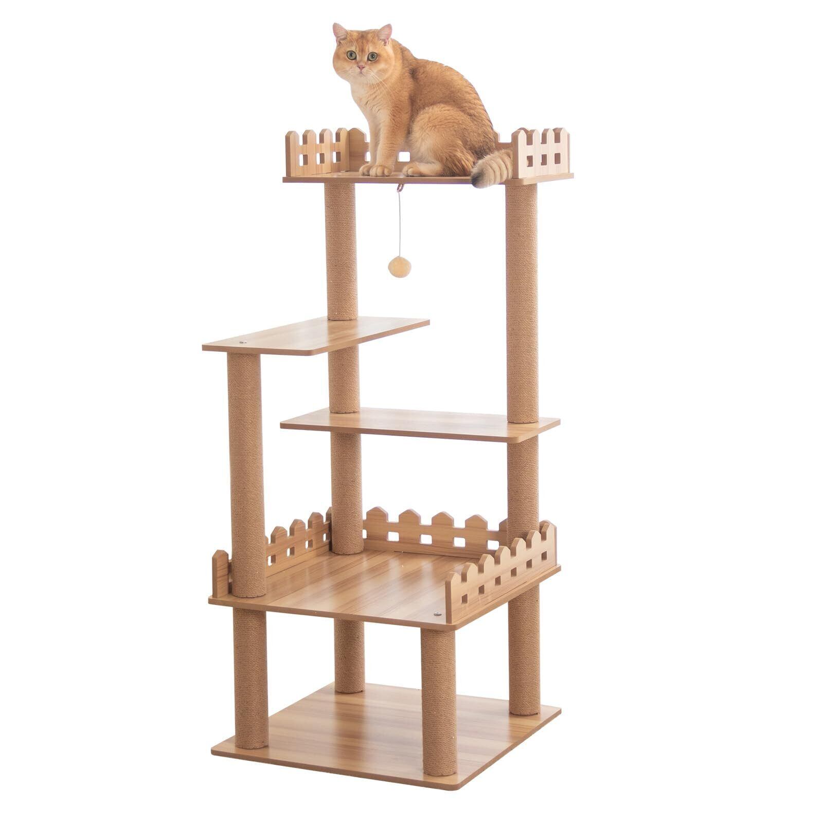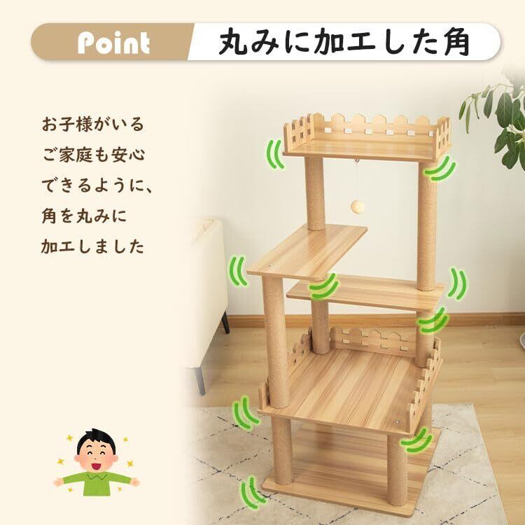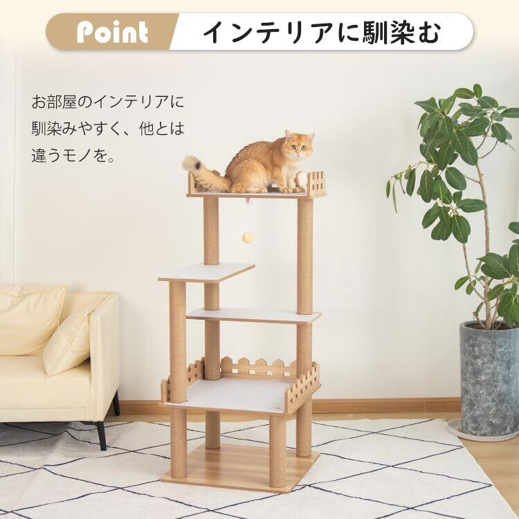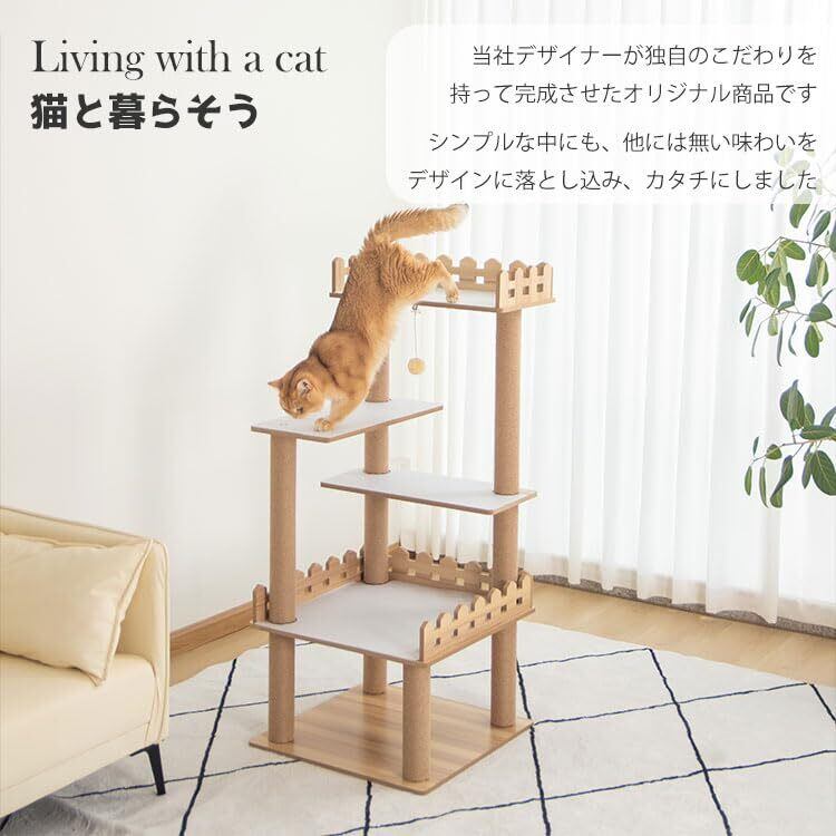 なになにLife キャットタワー 据え置き おしゃれ 壁際ぴったり 木目調 省スペース 広い 高さ125cm 猫タワー大型猫 シニア 多頭飼い 上りやすい キャットツリー 展望台 滑り止めマット 防水加工 インテリア性高い 安定性 インテリア性 掃除簡単 コーナー適用 狭い部屋向け 爪とぎポール 重厚感 インテリアに馴染みやすい くろつぎ 人気 可愛い シンプル 茶色麻紐