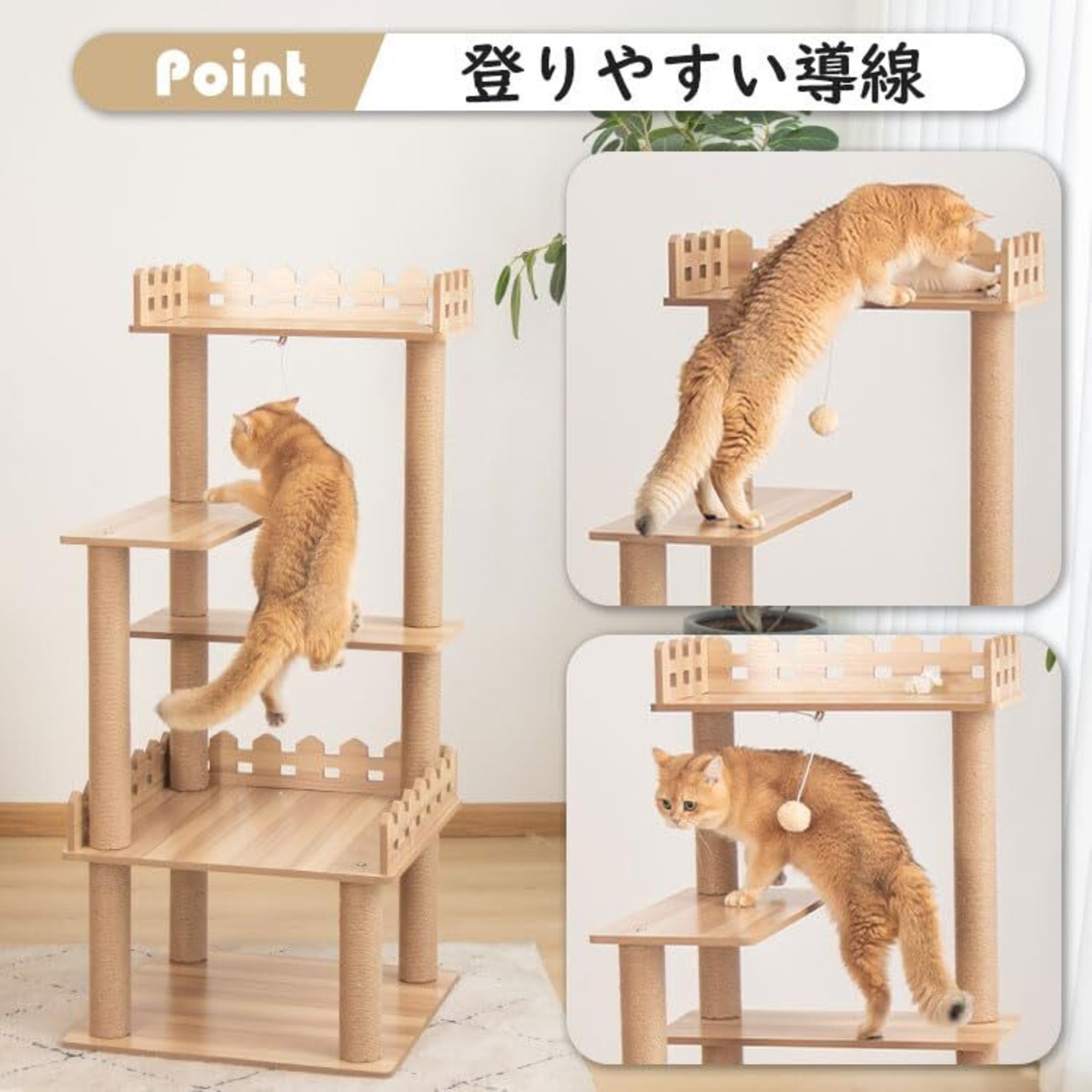 【広々としたスペース】すっきりとしたデザインになります。場所取らないですが、猫ちゃんがのんびりできるスペースがたっぷり設置しております。