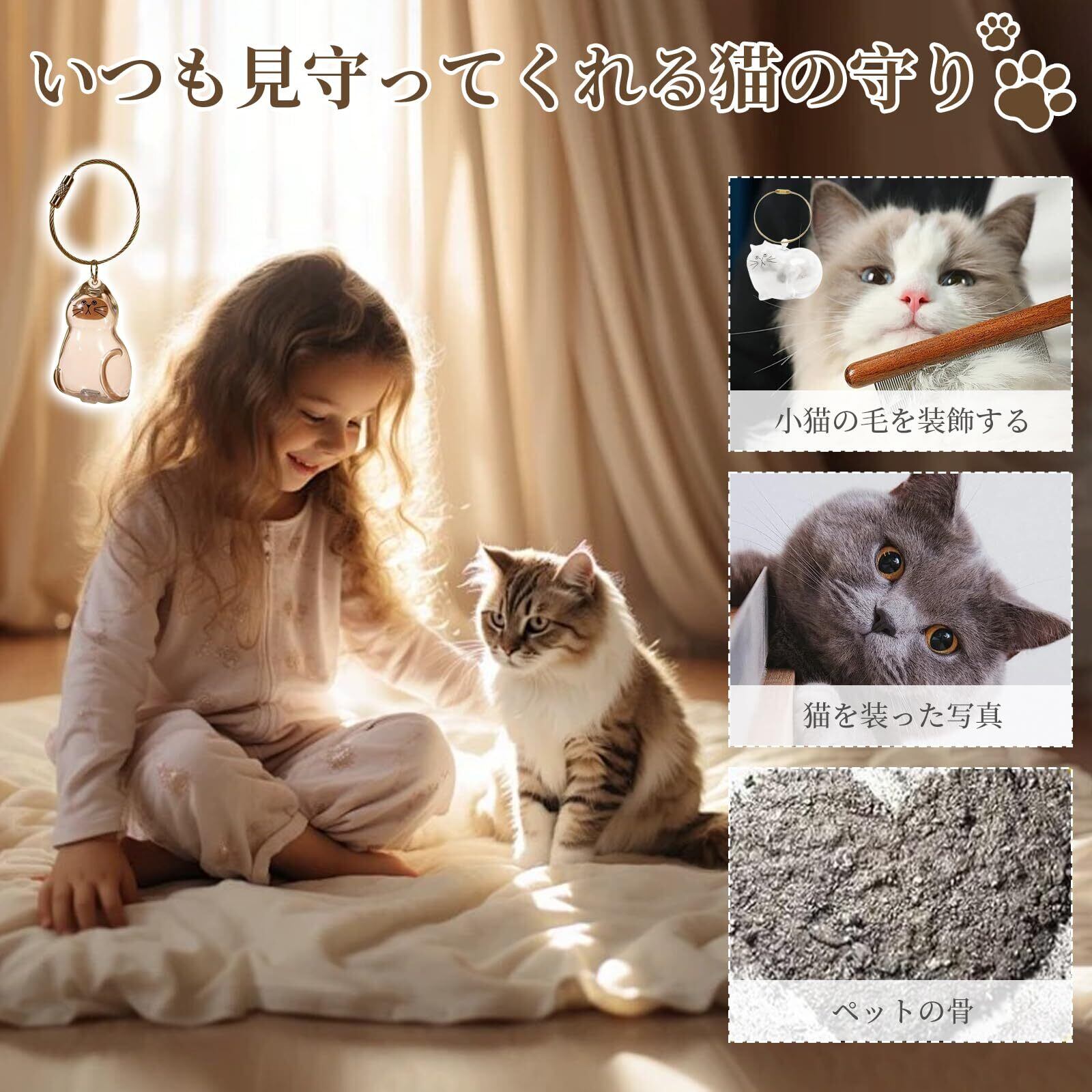 【特別な記念品】愛猫との日々を紡いだ抜け毛を、美しいアクセサリーとして永久保存。突然の別れの後も、この猫型ケースに収めた愛猫の毛は、かけがえのない思い出の品になります。ペットロスでお悩みの方へ贈る「癒しのグッズ」としても最適です。