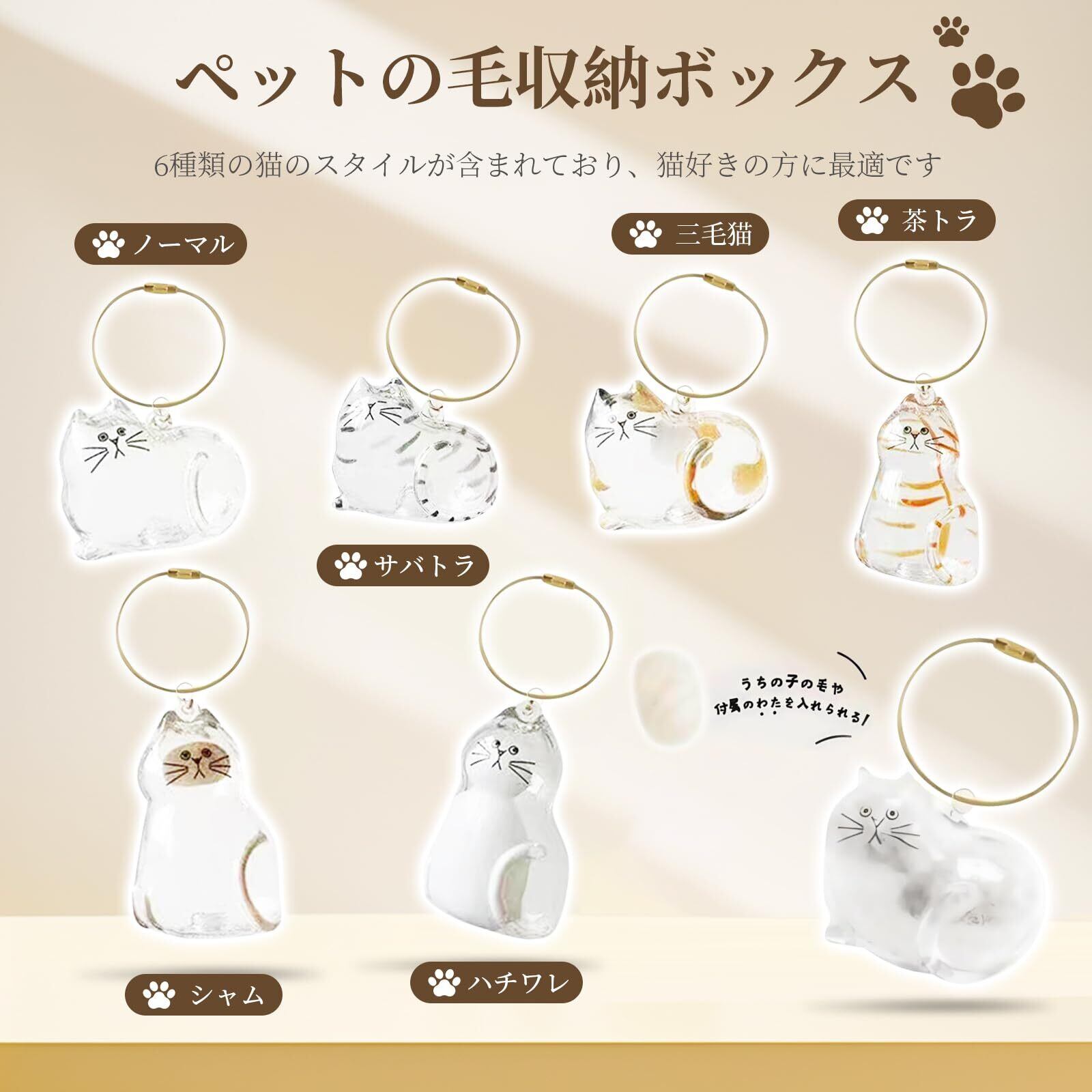 【高品質のアクリル素材】透明度が高く愛猫の毛が美しく映えるだけでなく、紫外線や経年劣化に強い耐久性が特徴です。愛猫の大切な毛を安全に保管。軽量ながらも頑丈な作りで、日常使いに最適なクオリティです