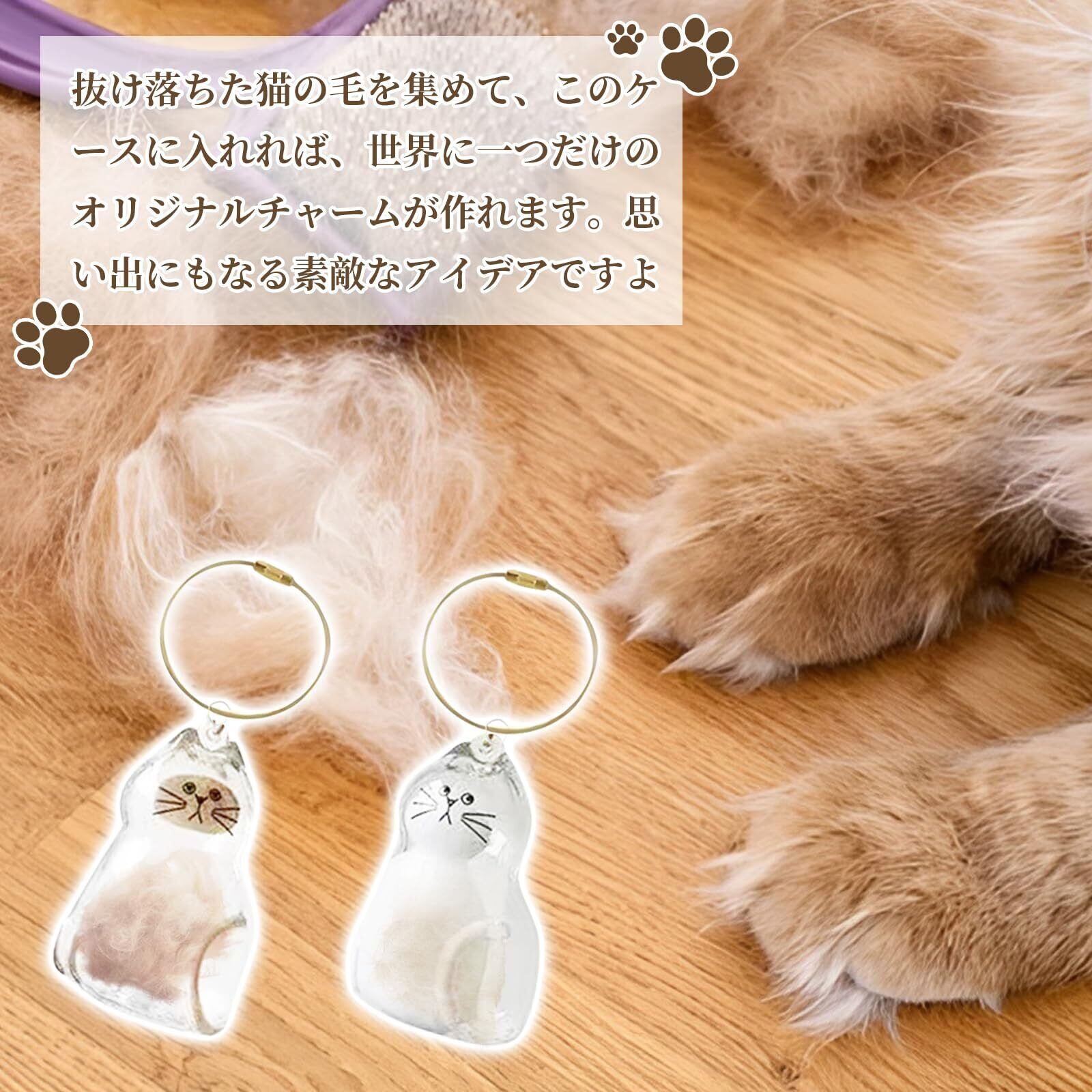 【抜け毛をオシャレに変身】ブラッシング後の毛をそのまま収納可能。悩みの種だった抜け毛が、可愛い猫型チャームに早変わりします。実用性とファッション性を兼ね備えた、猫好きならではのアイテム。外出先でも愛猫を感じられます。