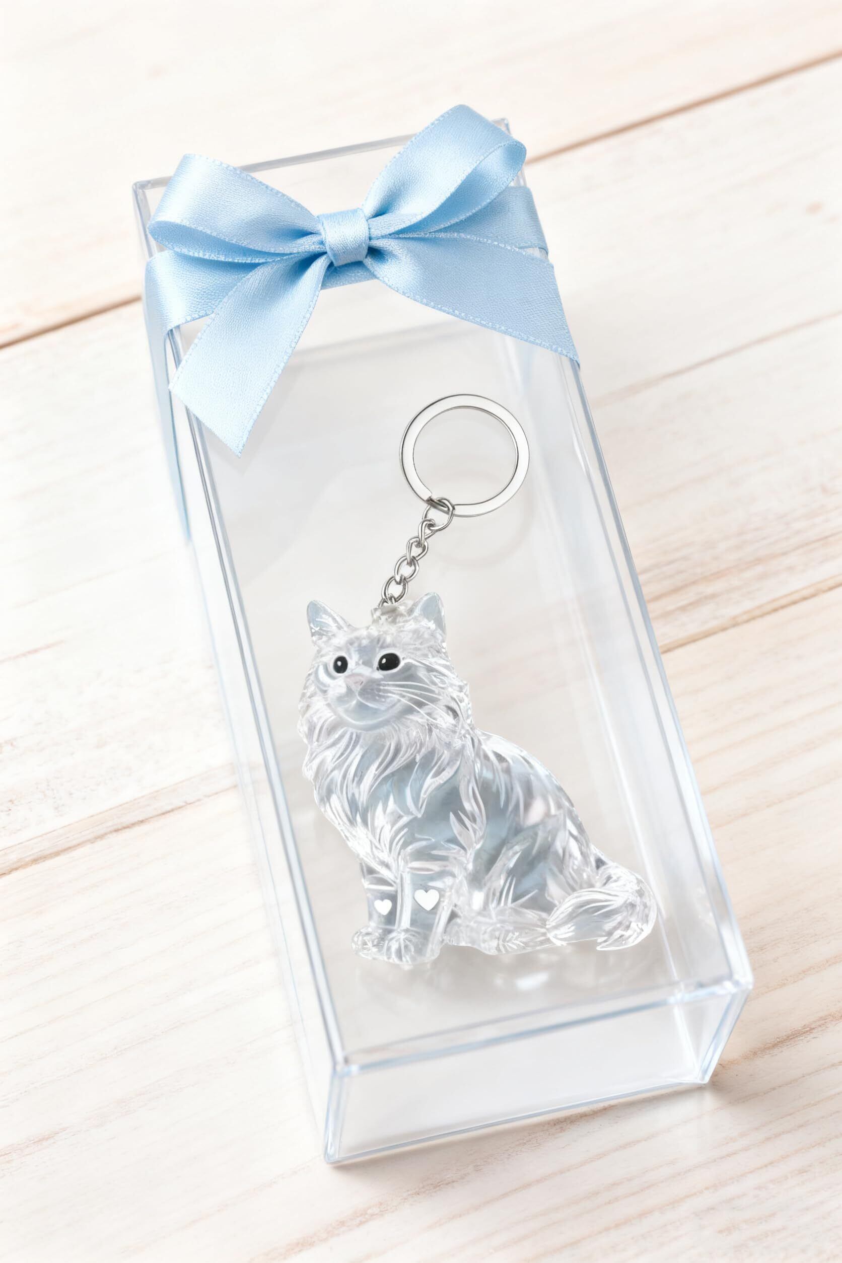 ZOOAIWEIアクリル猫毛糸ペット毛髪収集容器展示ケースペット記念品キーホルダーペンダント-メイン猫