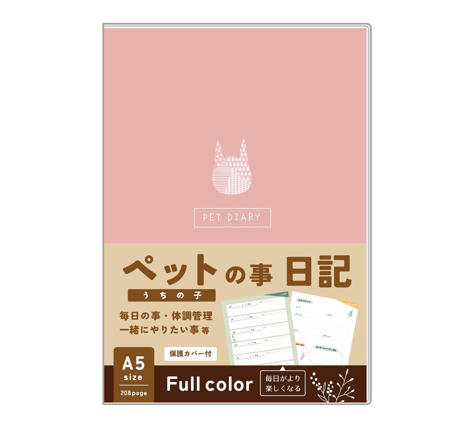 ノートライフ ペット日記 【ペットショップ店員さん監修】 A5サイズ 成長記録 体調管理 お世話 しつけ 飼い方 誕生日 ギフト プレゼント 208ページ (ねこ柄)
