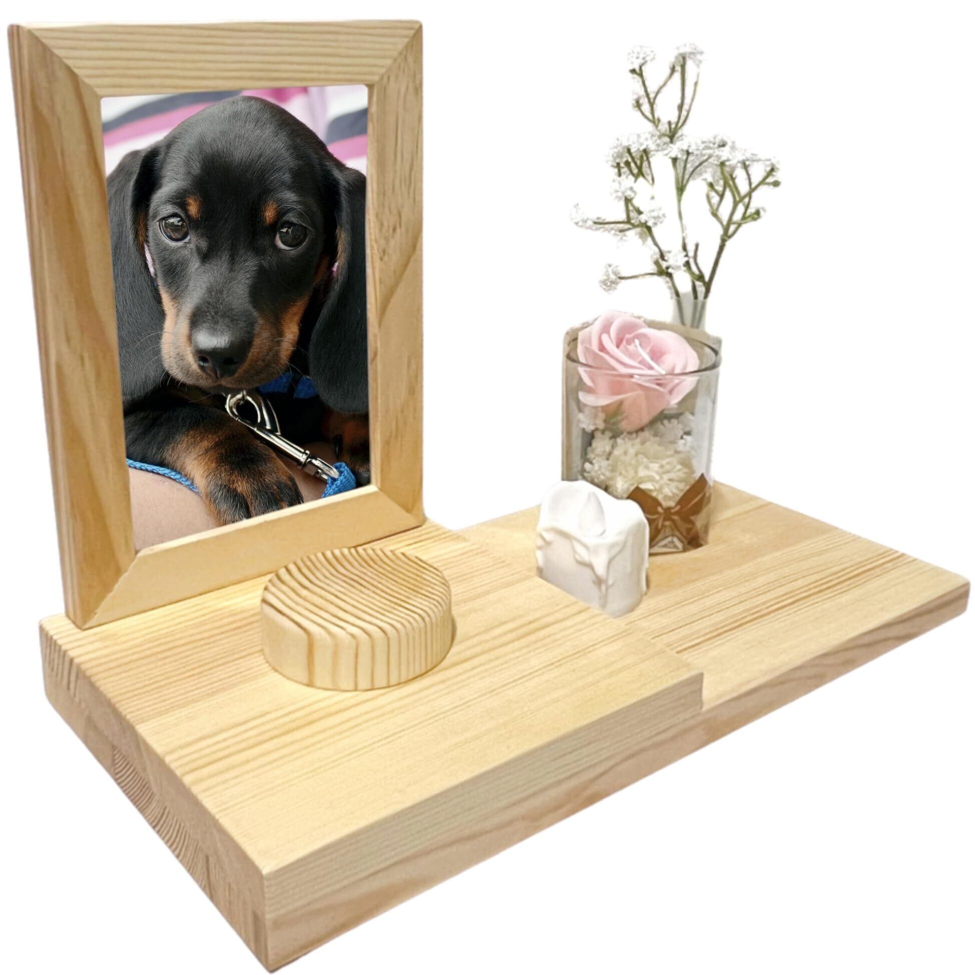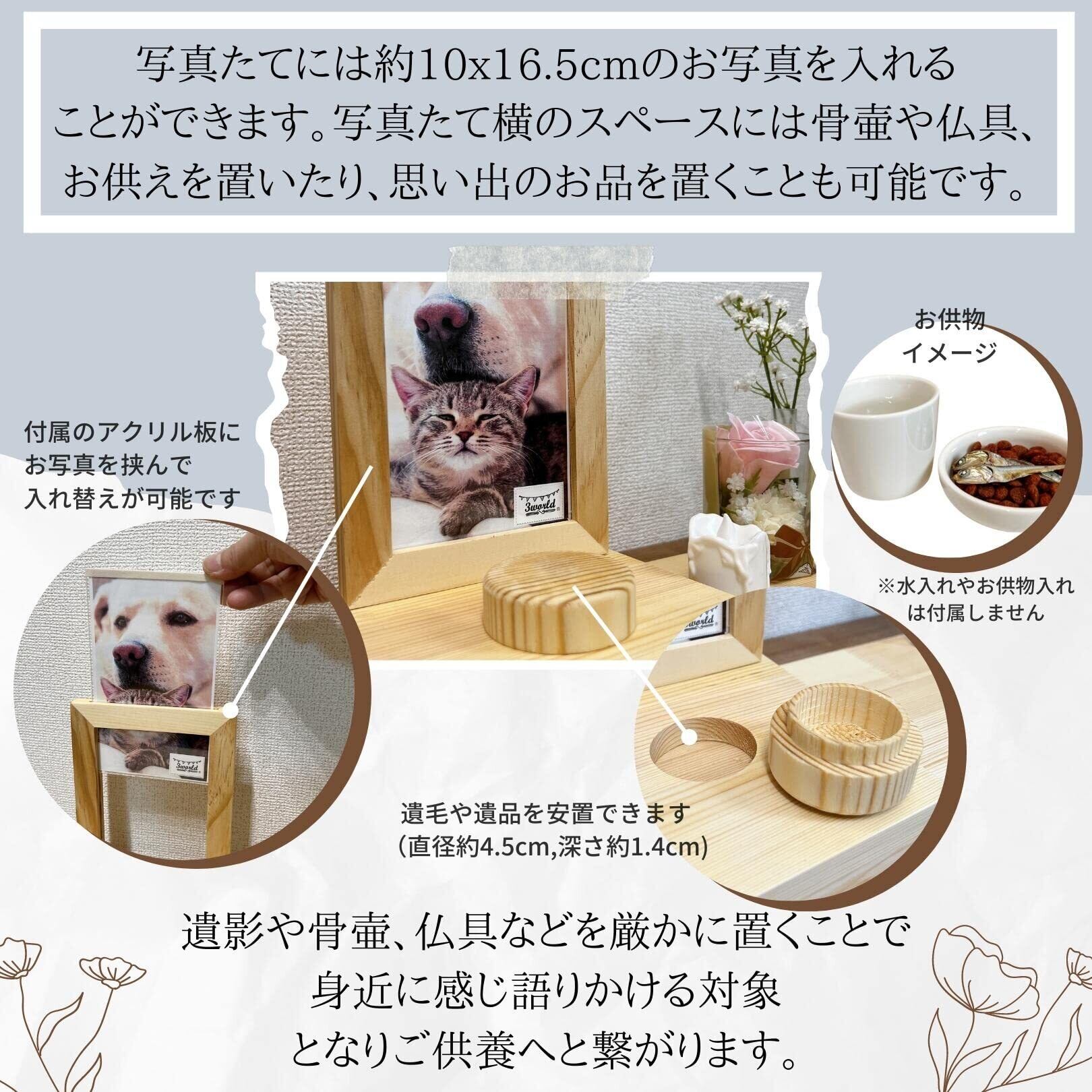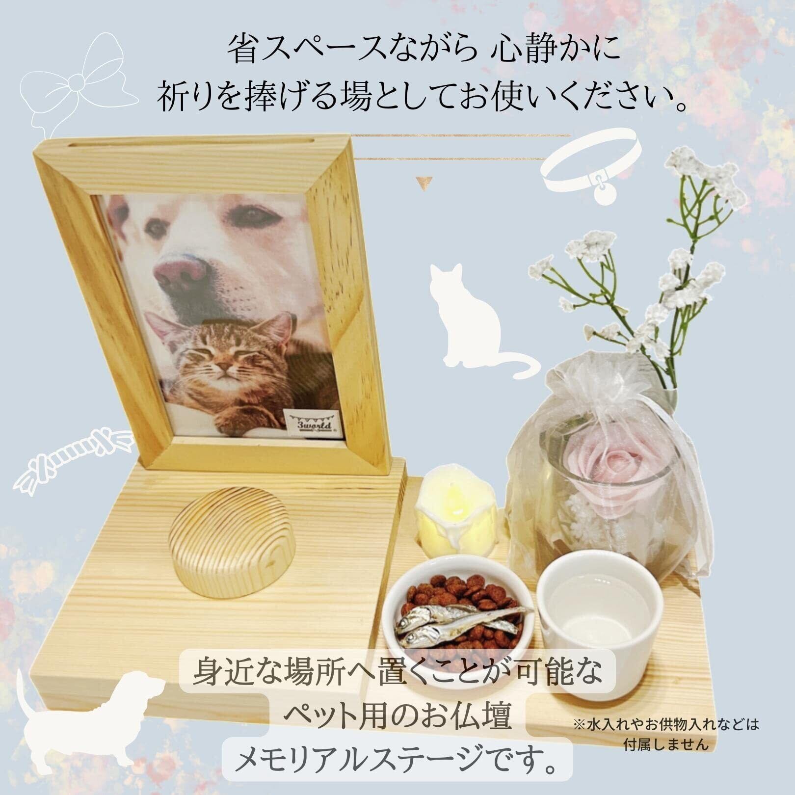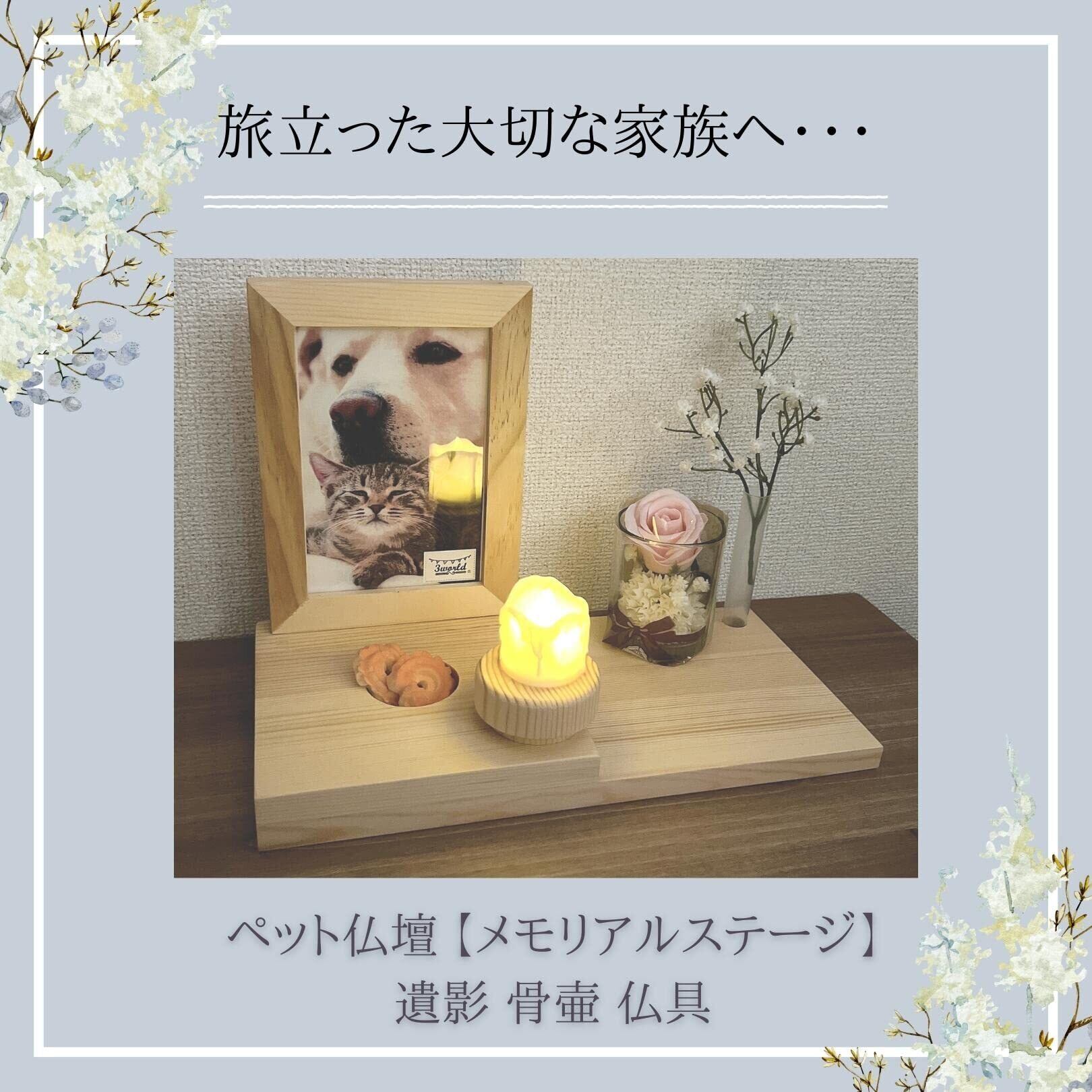 3world ペット 仏壇 供養台 お祈り 省スペース 木製 愛犬 愛猫 メモリアルステージ (供花・LEDろうそくセット) SW1967ご供養台(ナチュラルNB)