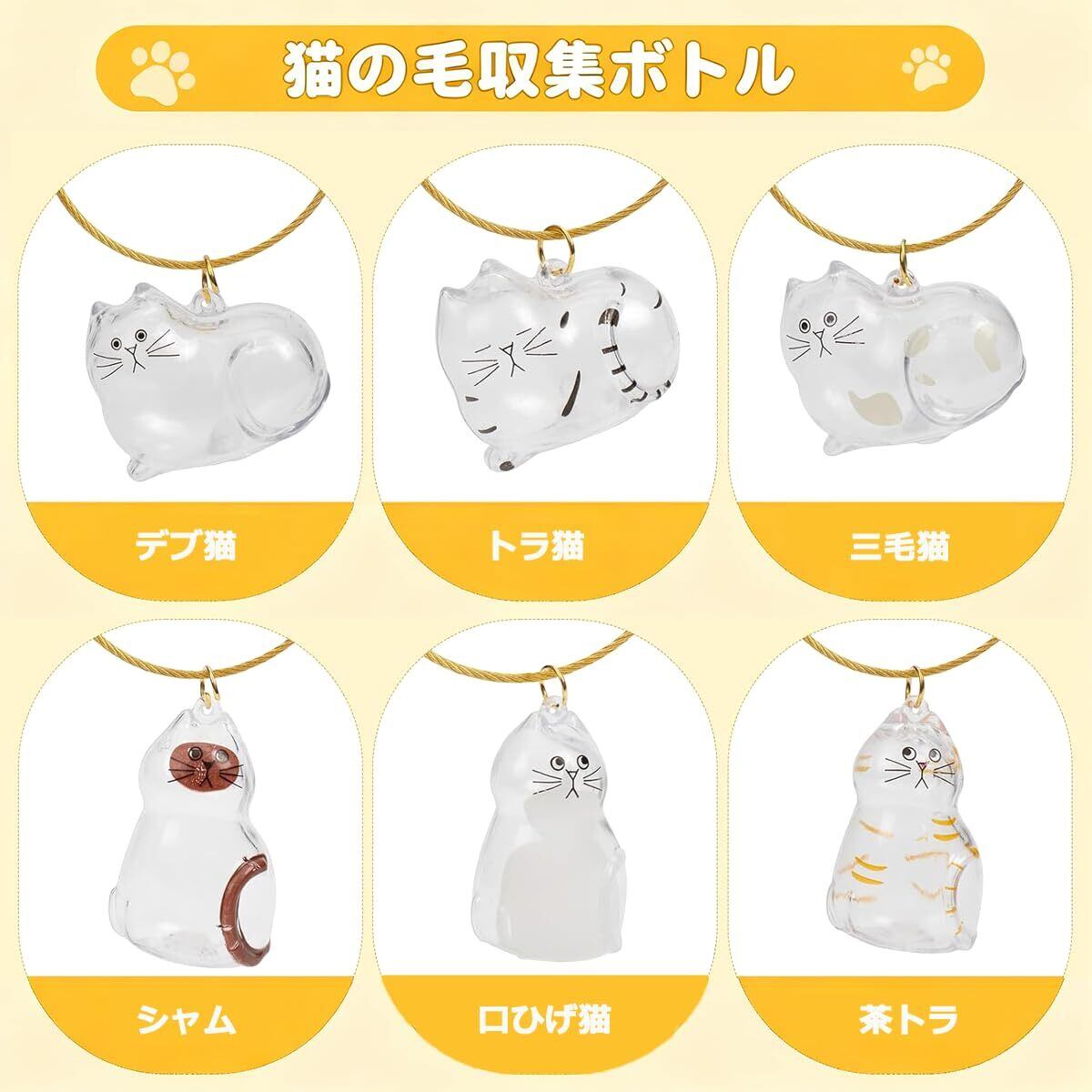 [onkemu] ペットメモリアルボトル&キーホルダーセット 猫・犬の毛 ひげ収納用 透明ケース 携帯可能な遺毛記念品 ペットの思い出を詰め込む可愛いメモリアルグッズ (6点セット-猫)