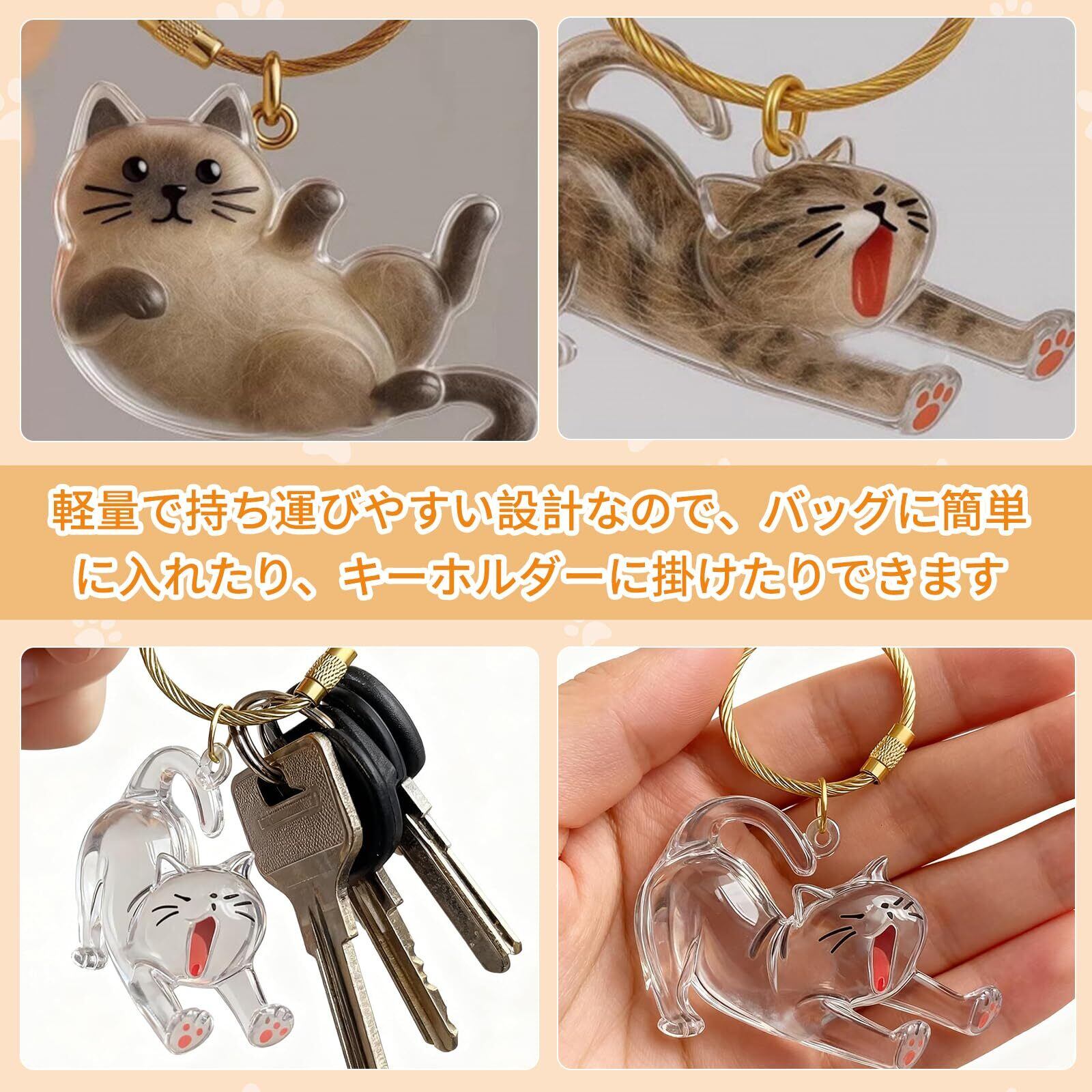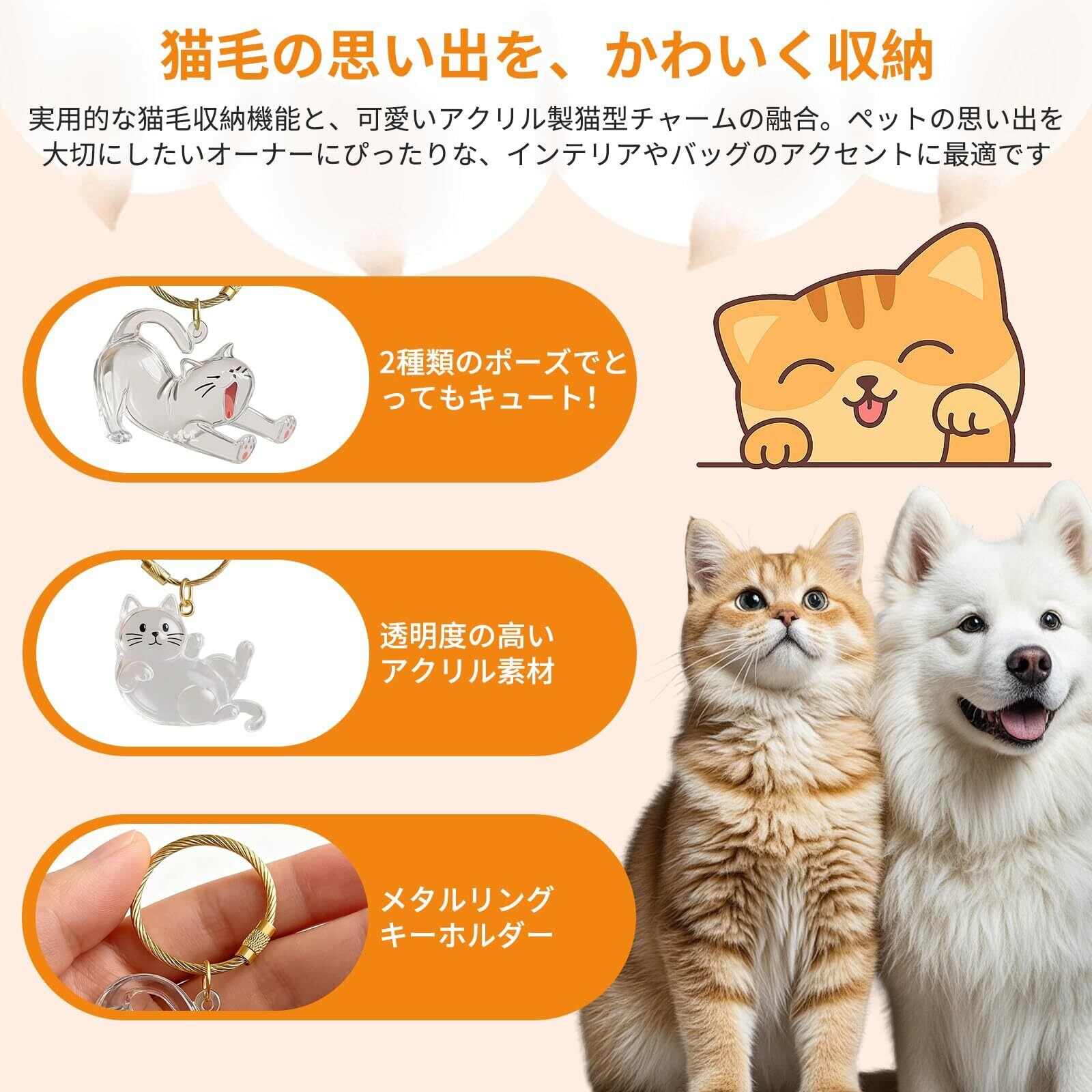 【癒しの思い出キーホルダー】愛猫や愛犬の大切な思い出をいつまでも大切に保管しましょう。透明アクリル製の収納ボックスには、大切なひげや遺骨など、ペットの毛を収納できます。高品質の素材と密閉設計で、キーホルダーとしても着用でき、いつでもペットとの繋がりを実感できます。