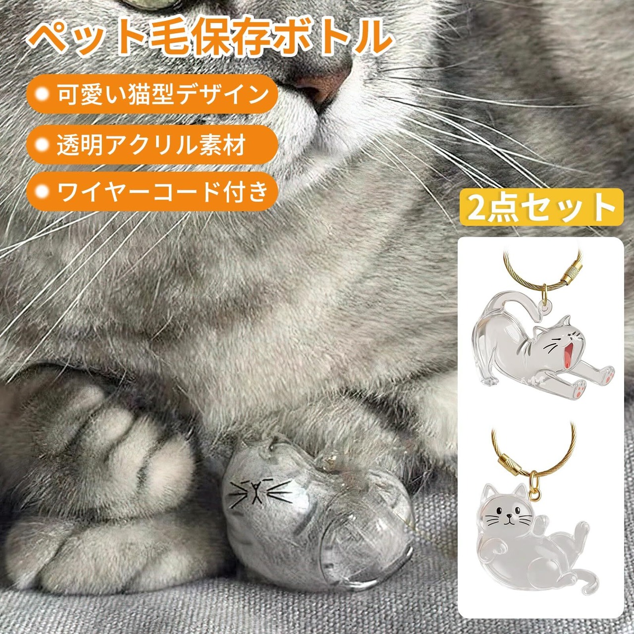 [雲見] ペット 遺毛 ケース 2点セット 透明アクリル製 ペット 遺毛入れ 犬の毛収納ボトル 猫の毛 キーホルダート ペットメモリアルボトル かわいい 収納猫の毛取り 持ち運び可能 思い出グッズ 癒しねこプレゼント 記念品 贈り物
