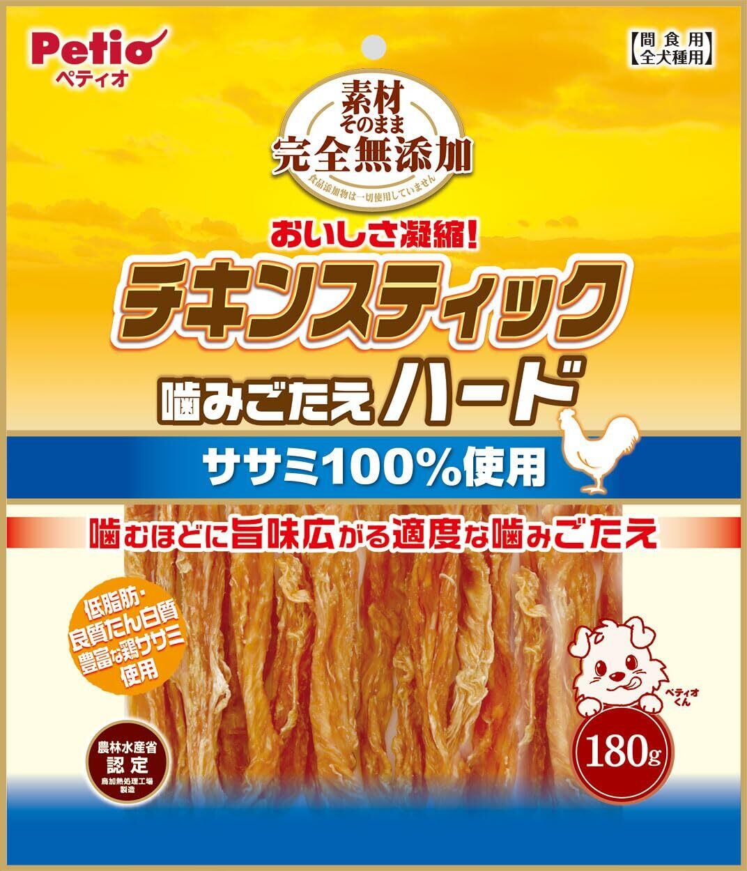 ペティオ (Petio) 素材そのまま 完全無添加 チキンスティック 噛みごたえハード 180g (ササミ100%使用)