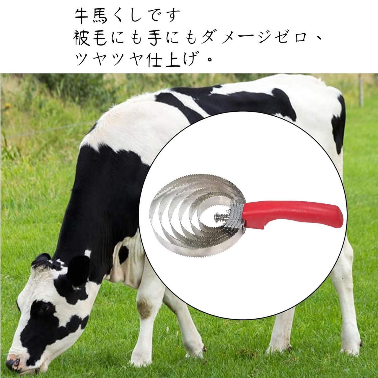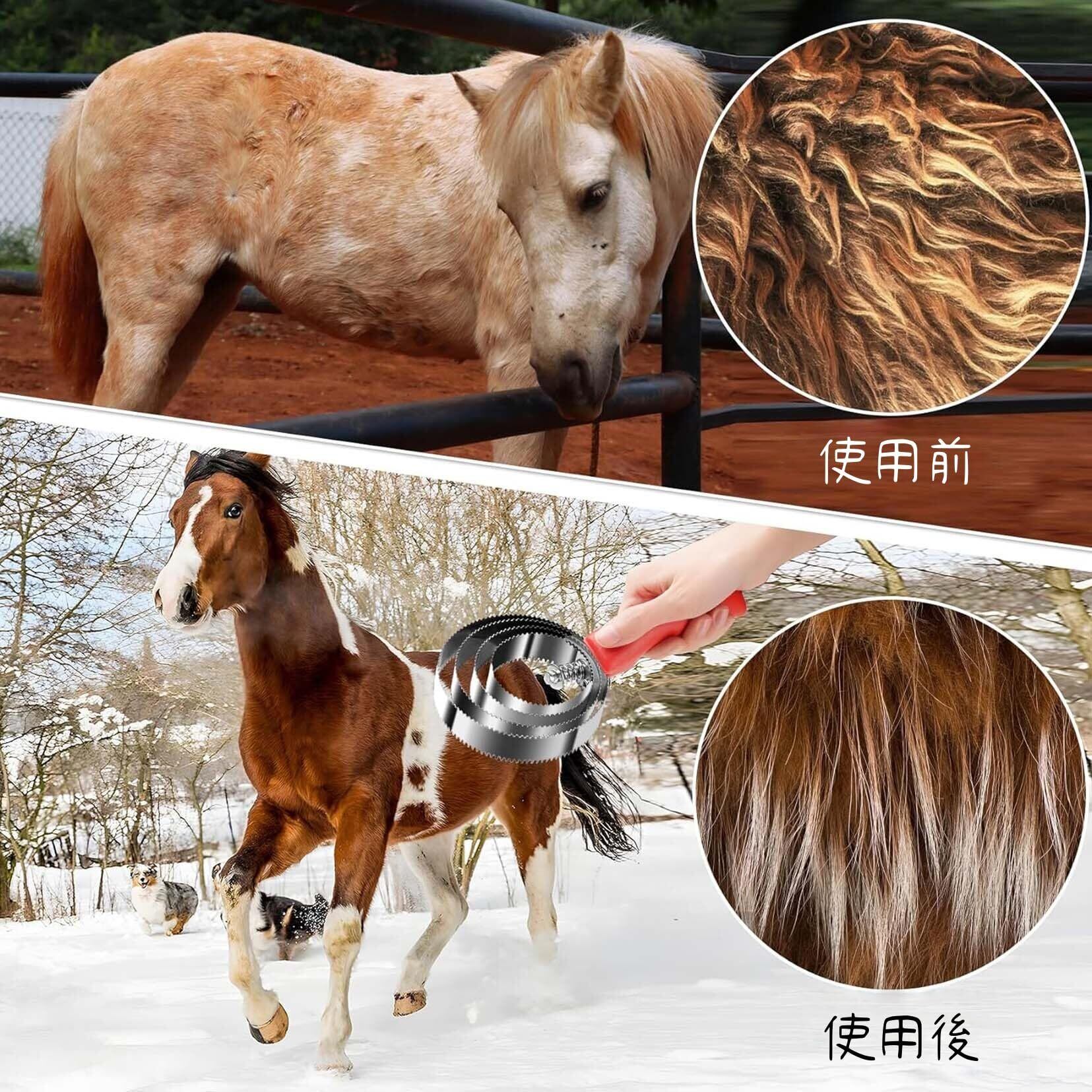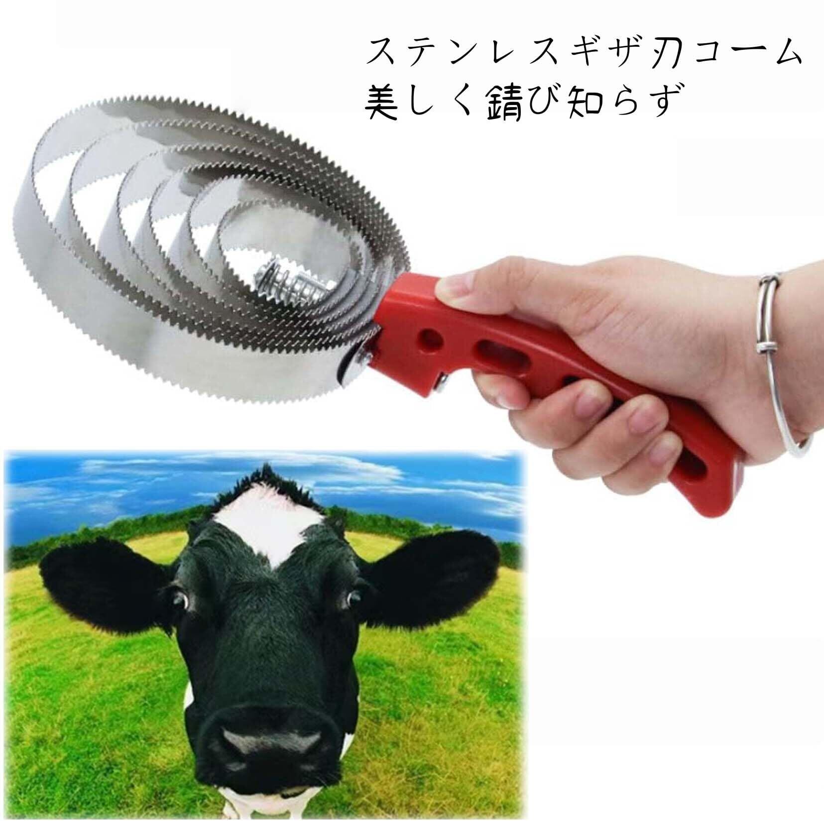 【両面粗細ギザ刃切替】粗刃面は換毛期の死毛や汗汚れを一気に落とし、細刃面は日常の艶出しとやさしいマッサージに最適。牛馬のかゆみを和らげ血行を促進します。裏返すだけで簡単に切替え、工具交換は不要です。