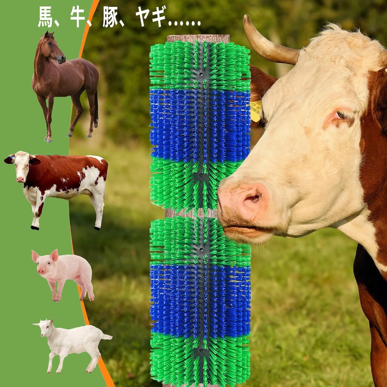 【家畜の快適さを高める設計】家畜のブラシは牛・馬・羊・鹿などにやさしくフィットし、被毛のほこりや抜け毛を取り除きつつ自然なマッサージ感で動物のリラックスをサポートします。