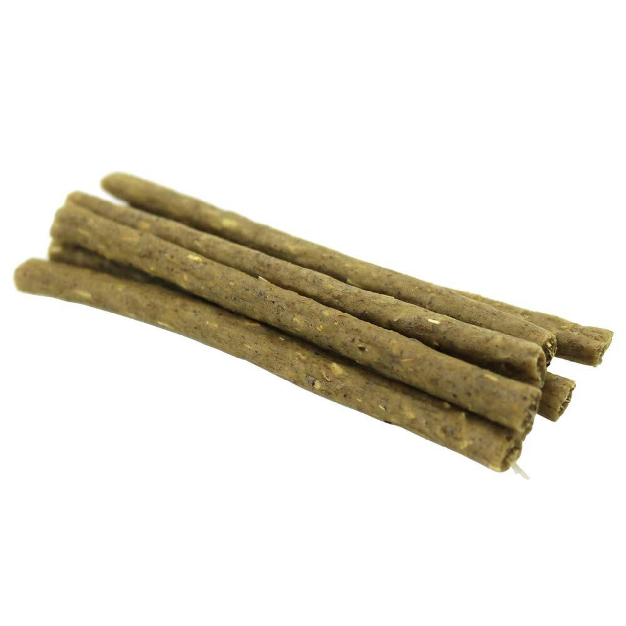 ・嗜好性が高いマメ科の牧草「アルファルファ」を使用したスティックタイプのおやつに、爽やかな香りのハーブ「カモミール」を加えました。