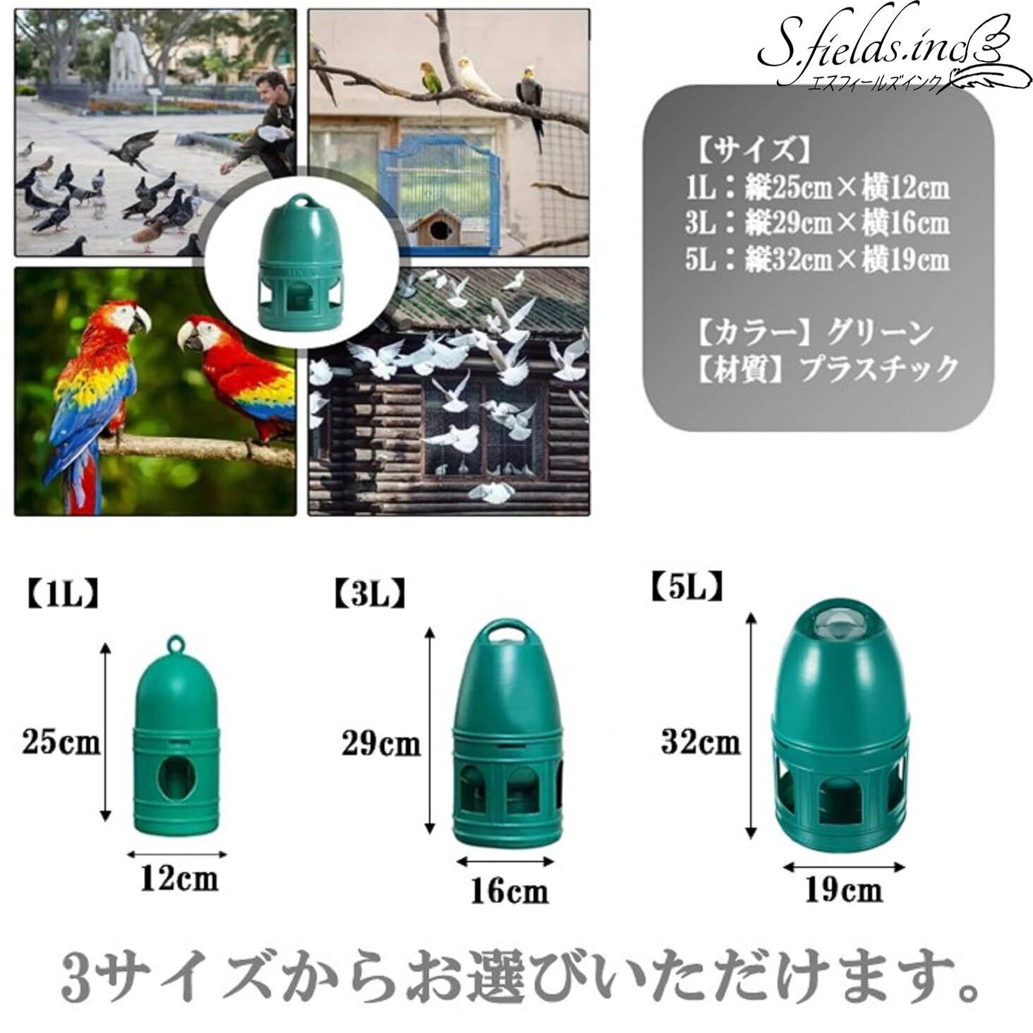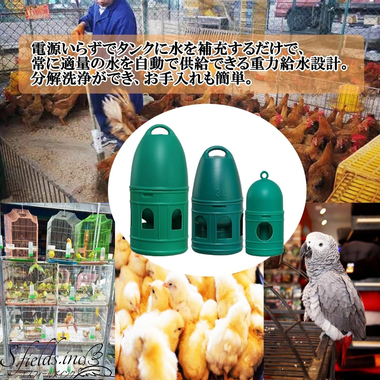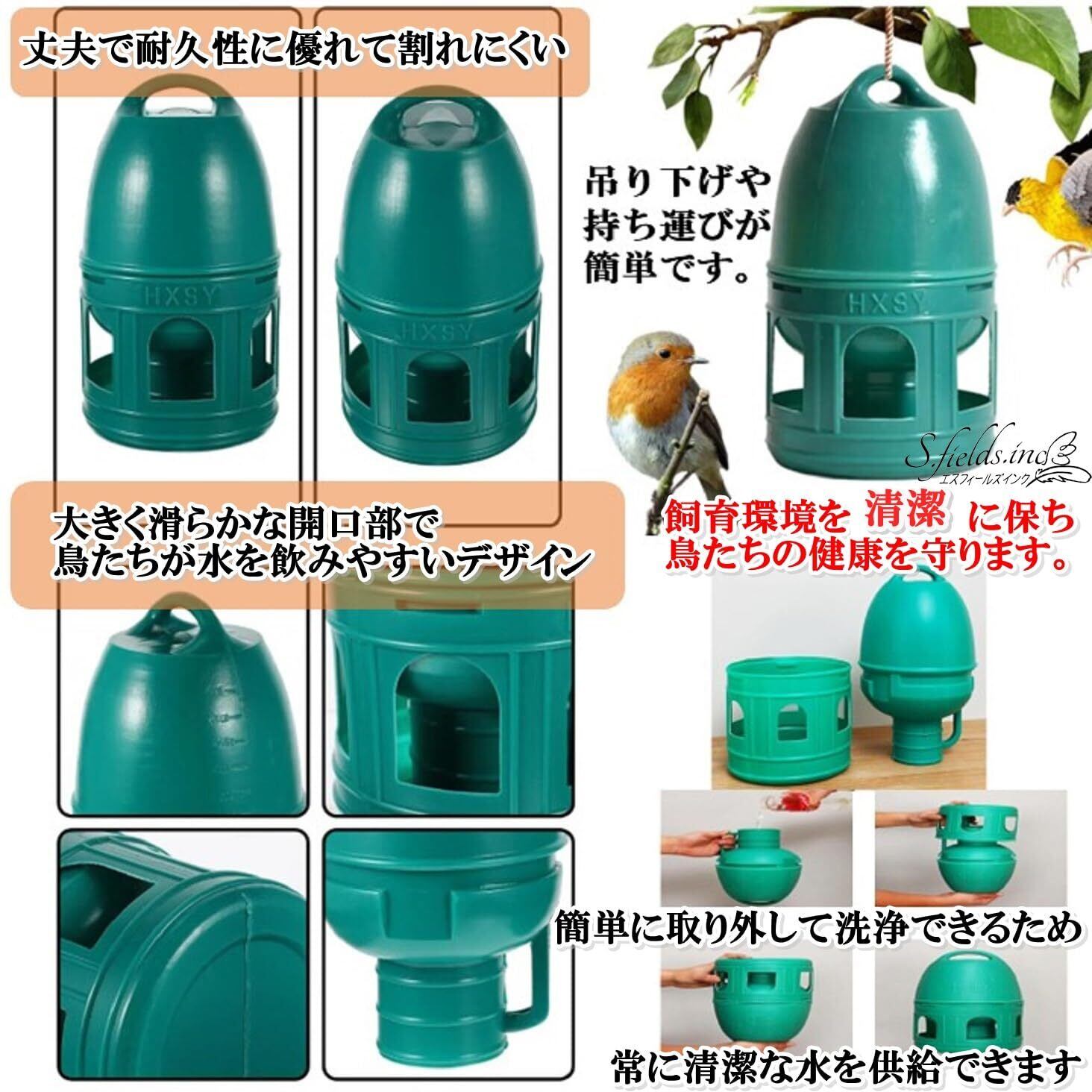 S.fields.inc 鳥給水器 鳥の水飲み器 水入れ 鶏 ひよこ 鳩 ニワトリ アヒル 家禽 家畜 プラスチック (1L)