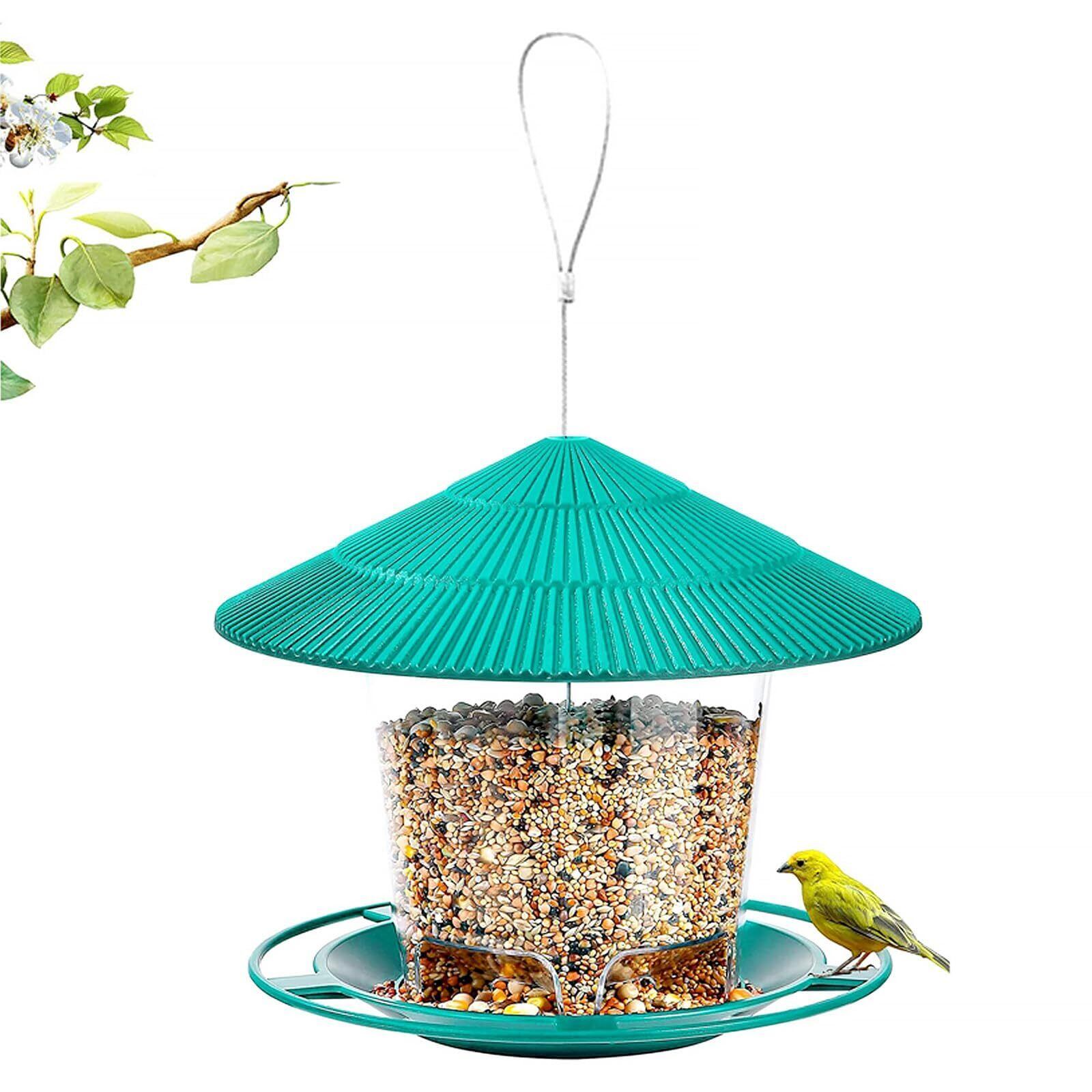 バードフィーダー 野鳥 小鳥 野鳥の餌台 吊り下げ 自動供給 上質プラスティック 洗える屋根付きバードウォッチング 鳥 エサ台 給餌器餌入れ 庭 ガーデン ベランダ屋根付き S字フック付き鳥 (グリーン)