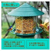 【家にいながらバードウォッチング】 ハウス型バードフィーダーの特徴は、屋根と足場が付いていること。鳥たちが好む木陰を作る屋根の下には、強い日差しや雨から身を守り、安定した足場で小鳥が止まりやすい。窓、ベランダ、テラス、お庭・軒先など家の中から見える位置に吊り下げれば、いつでも鳥を眺めてバードウォッチングを楽しめますよ。