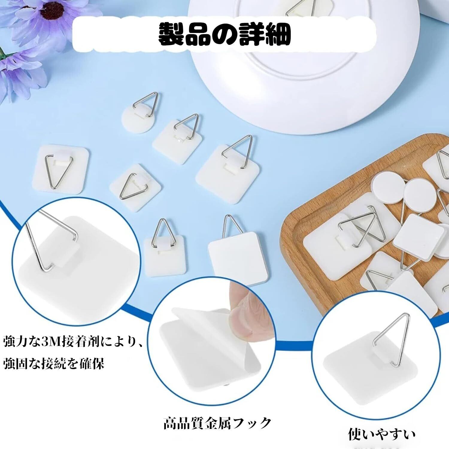 1.【製品パッケージ】商品サイズ:円形(約2.2*2.2 cm)、大さな正方形(約3.2*3.2 cm)、小さな正方形(2.5*2.5 cm),数量:円形、大さな正方形、小さな正方形,各4本、合計12本。 2.【高品質の素材】プラスチック材料を用いて製造され、台座とフックがしっかりと接続され、高硬度、頑丈で耐久性があり、注意:製品の体積が小さいため、重量物をぶら下げるのに適していない。 3.【製品の特徴】それは自己接着性のバックゴムを持っていて、穴を開ける必要がなくて、壁に損害を与えることがなくて、取り付けと取り外しが容易で、ゴムが残っていません。タイル、木材、金属、大理石、ガラス板などの滑らかな表面に適しています。 4.【操作が簡単】フックの自己粘着性バックをはがし、取り付けたい滑らかなアイテムに貼り付け、しばらく放置するだけ。 注意:貼り付ける前に、滑らかな表面がきれいで、汚染物質がないことを確認してください。 5.【幅広い用途】フックは広く使用されており、各種の板、芸術画、壁面芸術、写真などに適しており、壁面装飾の理想的な選択である。装飾の美しい壁にフックが見えないので、より芸術的になります。