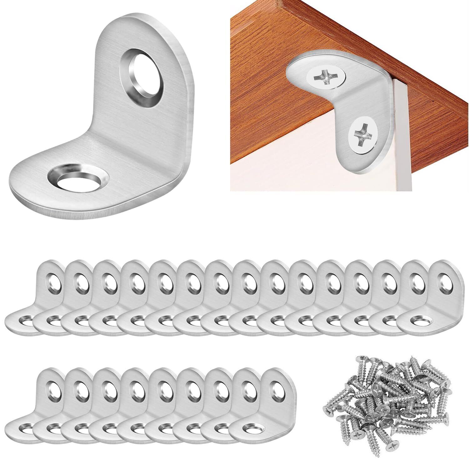 【新春セール】l字金具 L字アングルブラケット ステンレス製 直角ブラケット【24個セット】 20×20×16mm 棚受け金具 アングル 接合金具 補強ブラケット 家具の補強 固定金具 ステンレスネジ50個付 (シルバー)