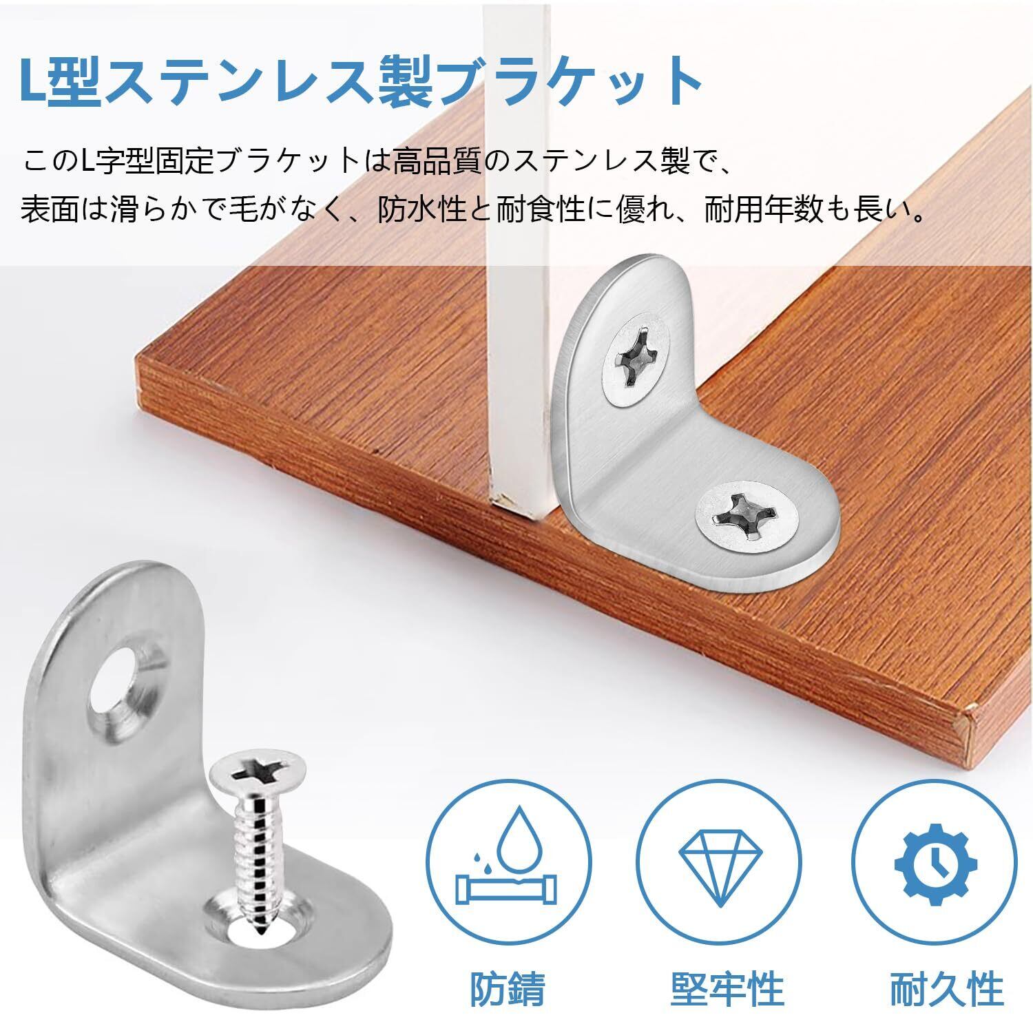 l字金具 L字アングルブラケット ステンレス製 直角ブラケット【24個セット】 20×20×16mm 棚受け金具 アングル 接合金具 補強ブラケット 家具の補強 固定金具 ステンレスネジ50個付 (シルバー)