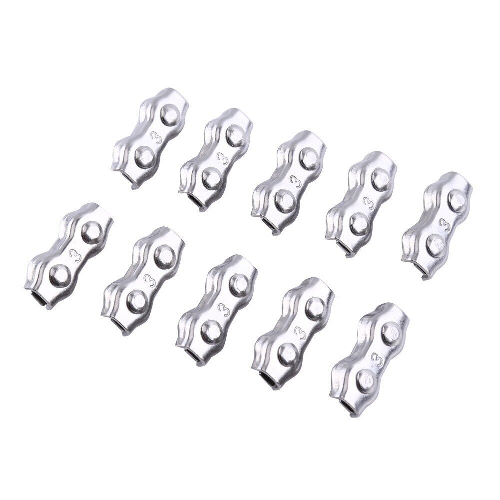 Atyhao 【10個入り】板型ワイヤークリップ ダブル ワイヤーロープクリップ ワイヤー 止め金具 補助金具 ワイヤークリップ ケーブルクランプ M3 デュプレックスクリップステンレス鋼 トップスリーブクリップ デュプレックスクリップ ワイヤーケーブル ワイヤークリップケーブルクランプ シングル 3mm 直径