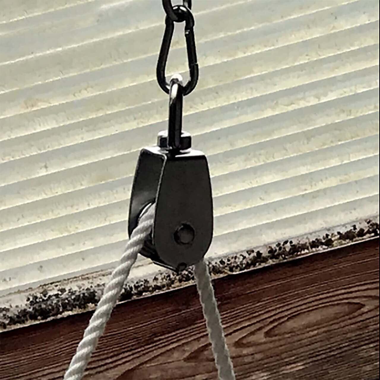 滑車2個、カラビナ2個です、ステンレス製です。滑車使用荷重: 30kg /1個です。滑車にベアリングは入っていません。 万が一、不具合・不良がありましたら、お気軽に返品してください。