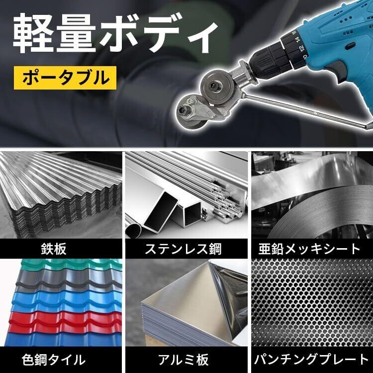 【2022最新】電動ドリルプレートカッター【2024新&スイスイ簡単に切れる】電動カッター 多機能金属切削工具 高速回転式メタルシャー DIY用手動切削工具 電動ドリルばさみ金属板の高硬度材切断用 炭素鋼 アルミ合金 ステンレス板 アルミ 補助カッター 切断 金属カッター(電動ドリルは含まれません)