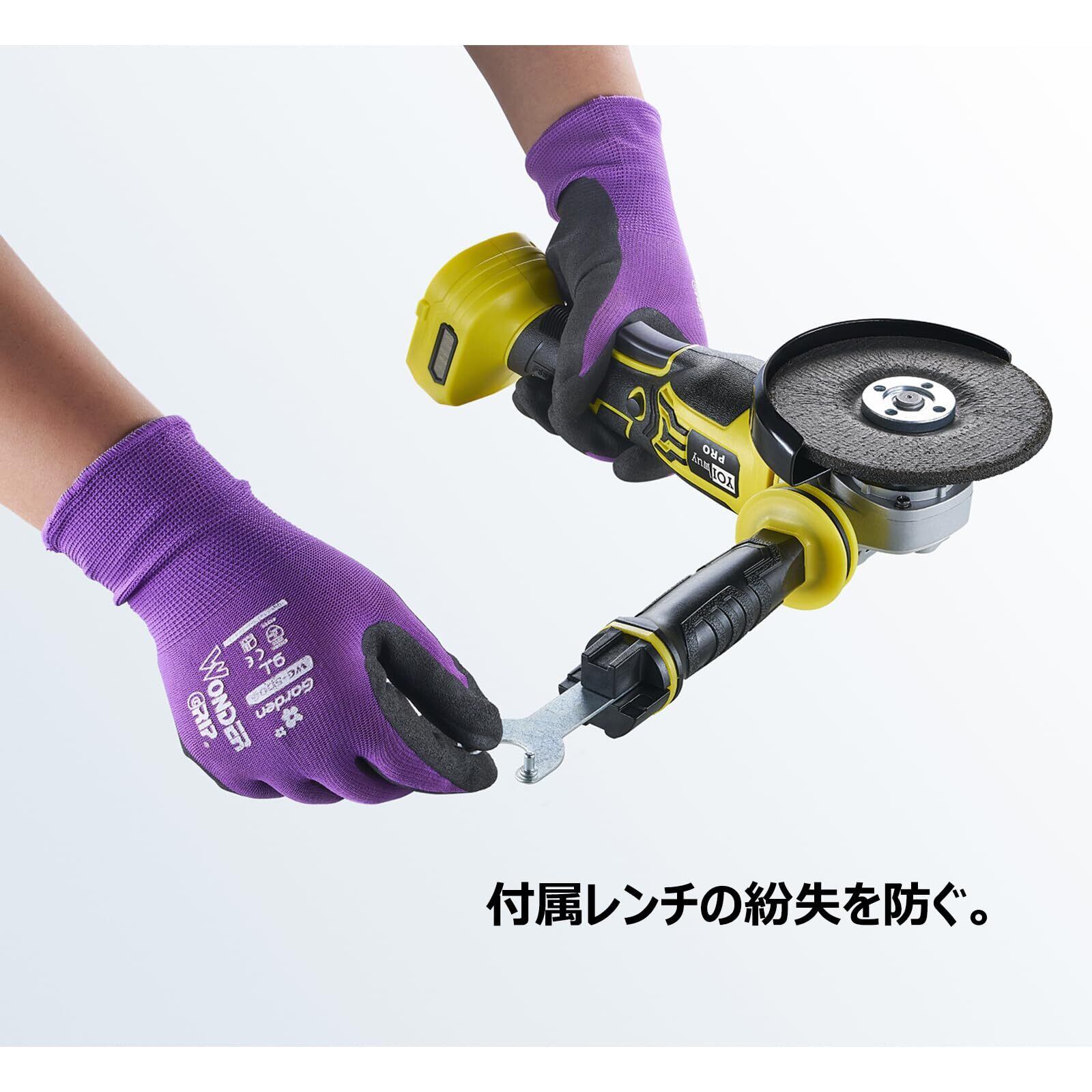 独特な構造で、ディスク交換用レンチハンドルに内蔵し、紛失防止と収納性が両立。ホイルカバーが工具レスで調整可能、作業性が抜群。適用のディスクサイズ:外径125mm内径22mm最大厚み6mm。本体質量:1.6kg。