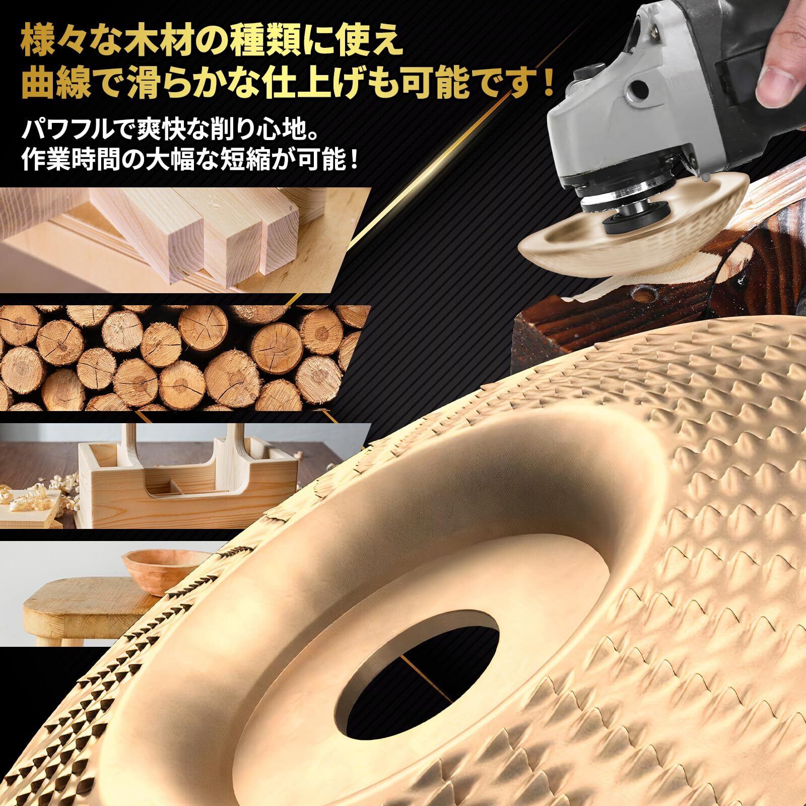 【商品詳細】効率的な作業 鋭利な歯を持つ研磨ディスクで、少ない力でパワフルな研磨が可能です。木工作業がスムーズになり、時間と労力を節約できます。 簡単取り付け 本体中央の取り付け穴は標準型の電動アングルグラインダーに対応する約16mmで、面倒な操作なしで簡単に装着可能です。