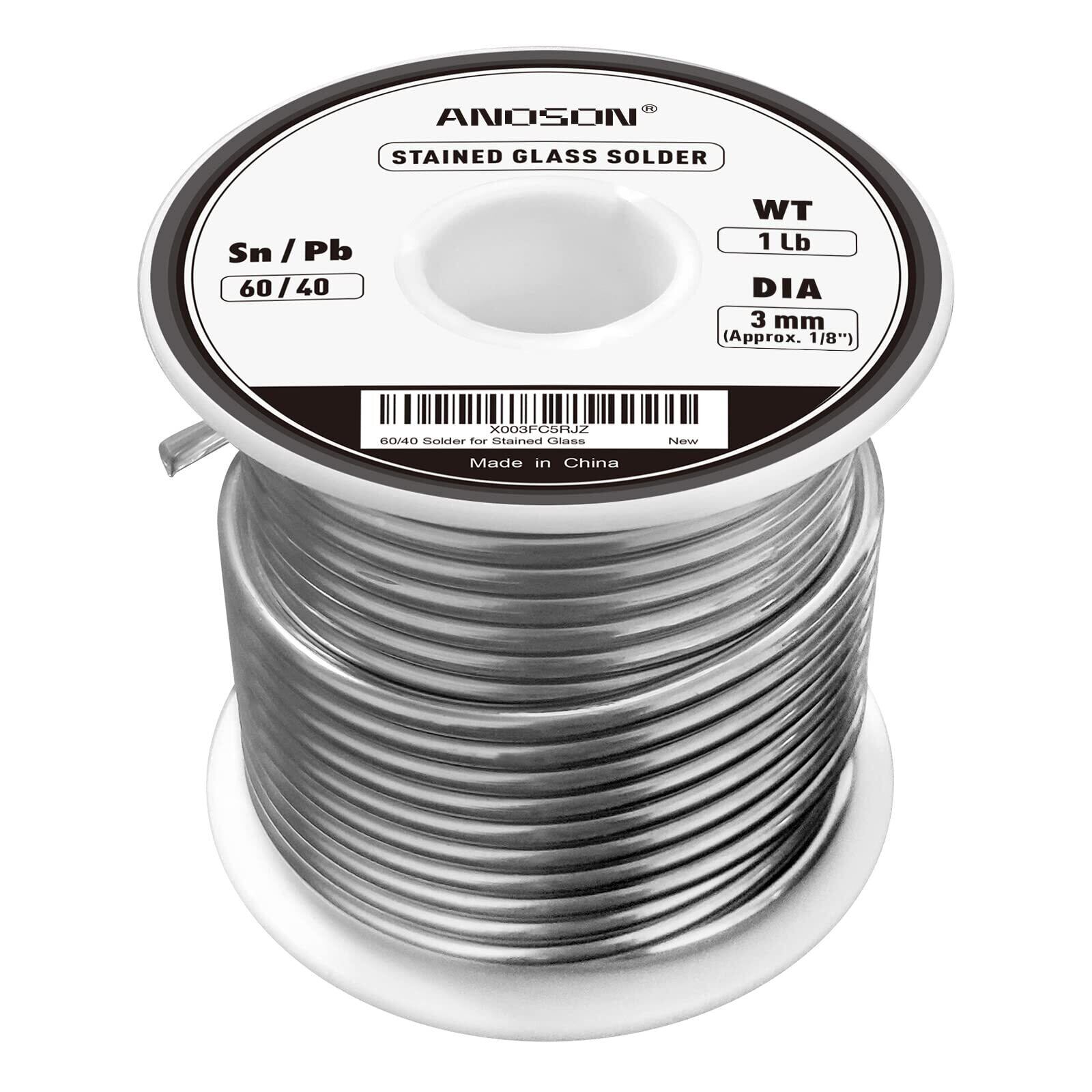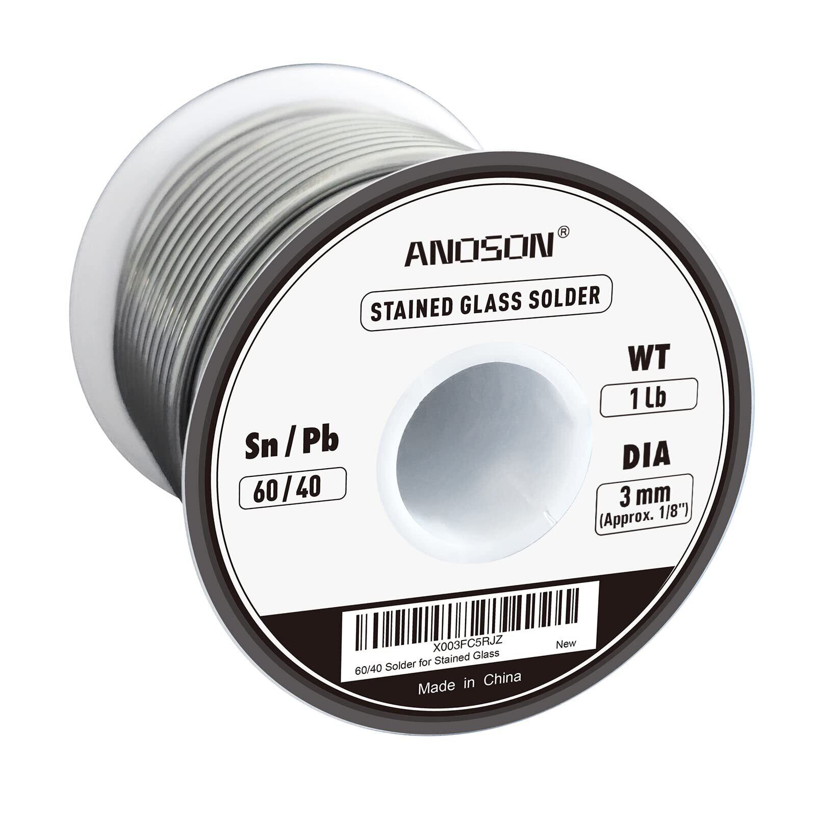 60/40 ステンドグラス用はんだ、直径1/8インチ(3mm)、スプール1ポンド、 ANOSON提供