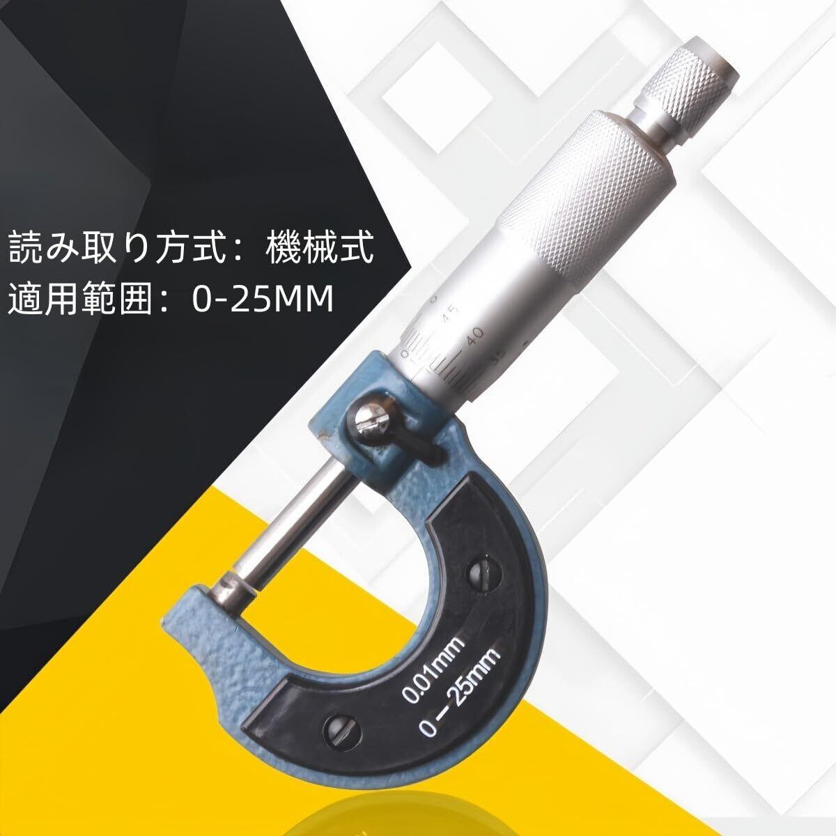 【マイクロメーターの製品詳細】この測定ツールは、高い精度で測定できる外側マイクロメーターです。 この外径測定用マイクロメーターは、外径を正確に測定するためのものであり、測定精度は0.01mmで、測定範囲は0-25mmです。この機械工測定ツールは、物造り応援するために設計された精密計測工具です。個人用入門に最適で、プライベート使用なら充分な性能を持っています。