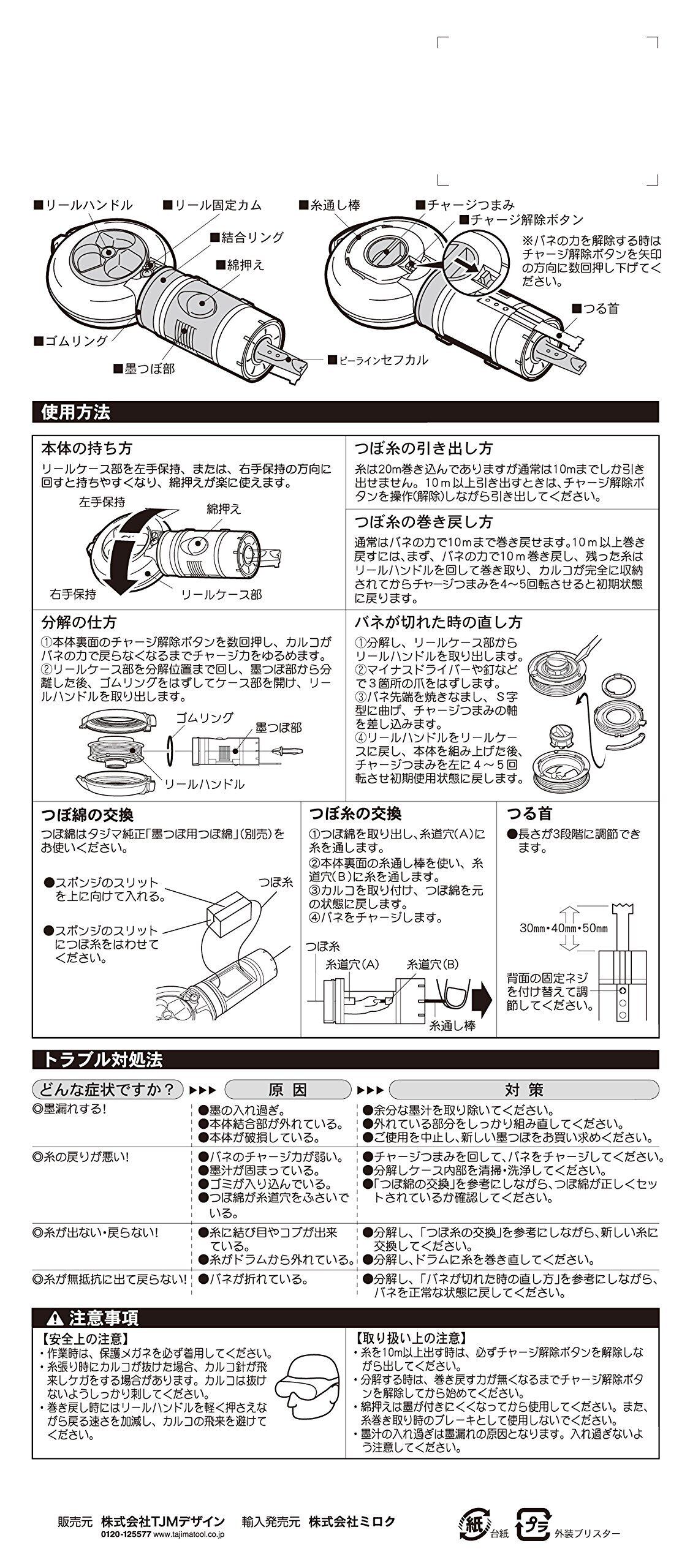 ・手を汚さずに、狭い所にも確実に墨が打てるステンレス製鶴首付(30mm・40mm・50mmの3段階調節が可能)