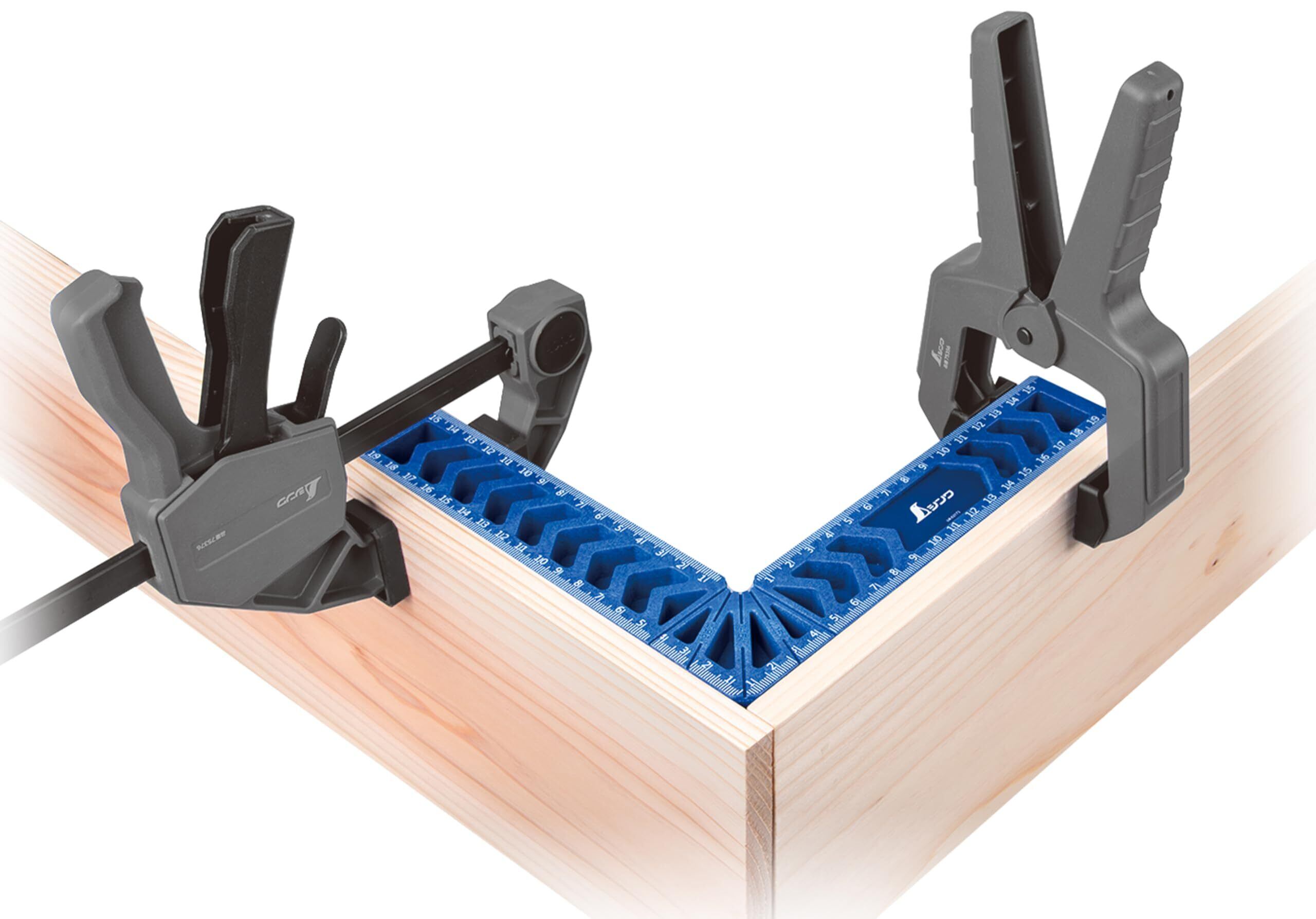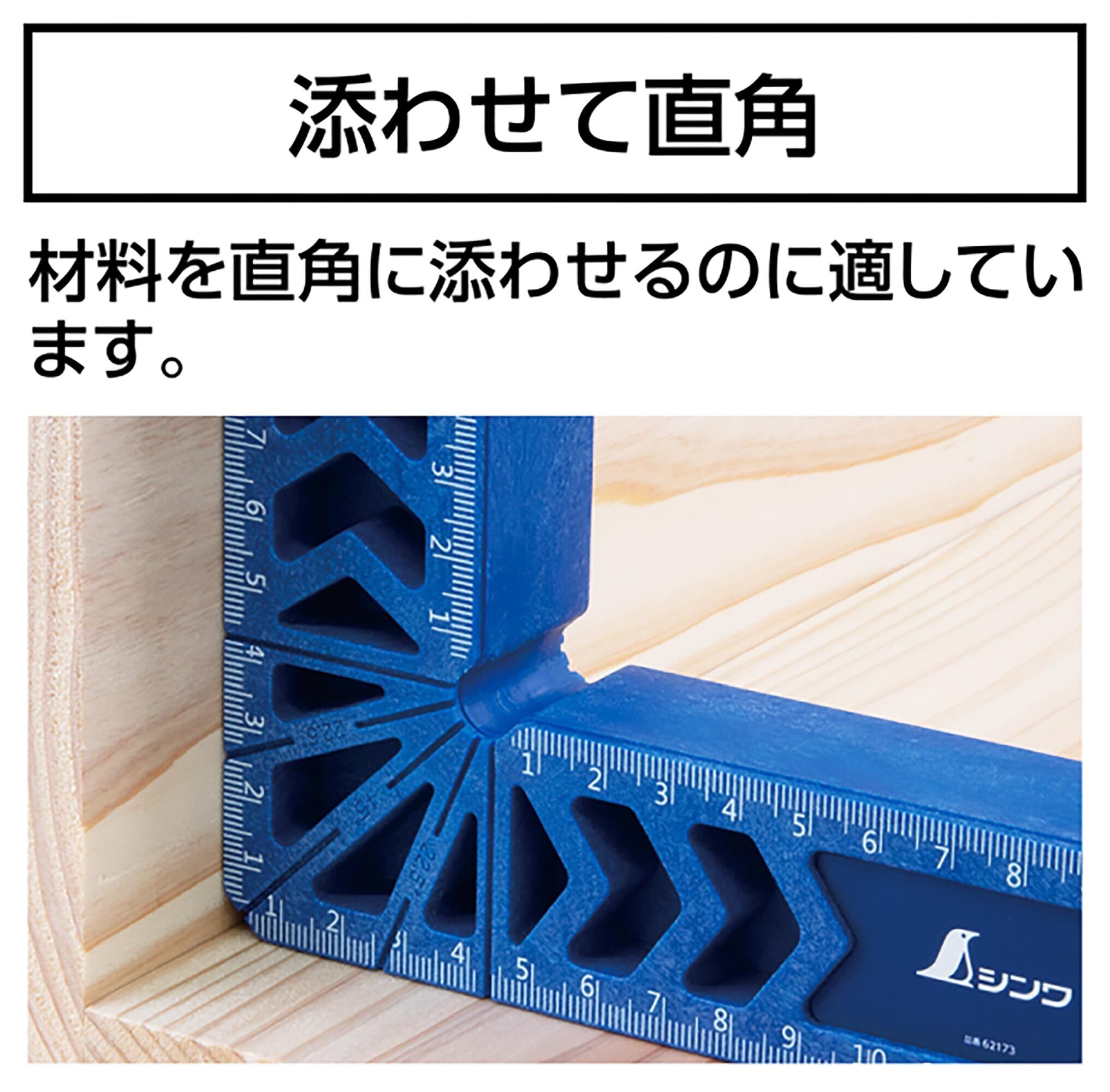 別売のクランプと組み合わせて、材料を固定する際に直角を確認できます。