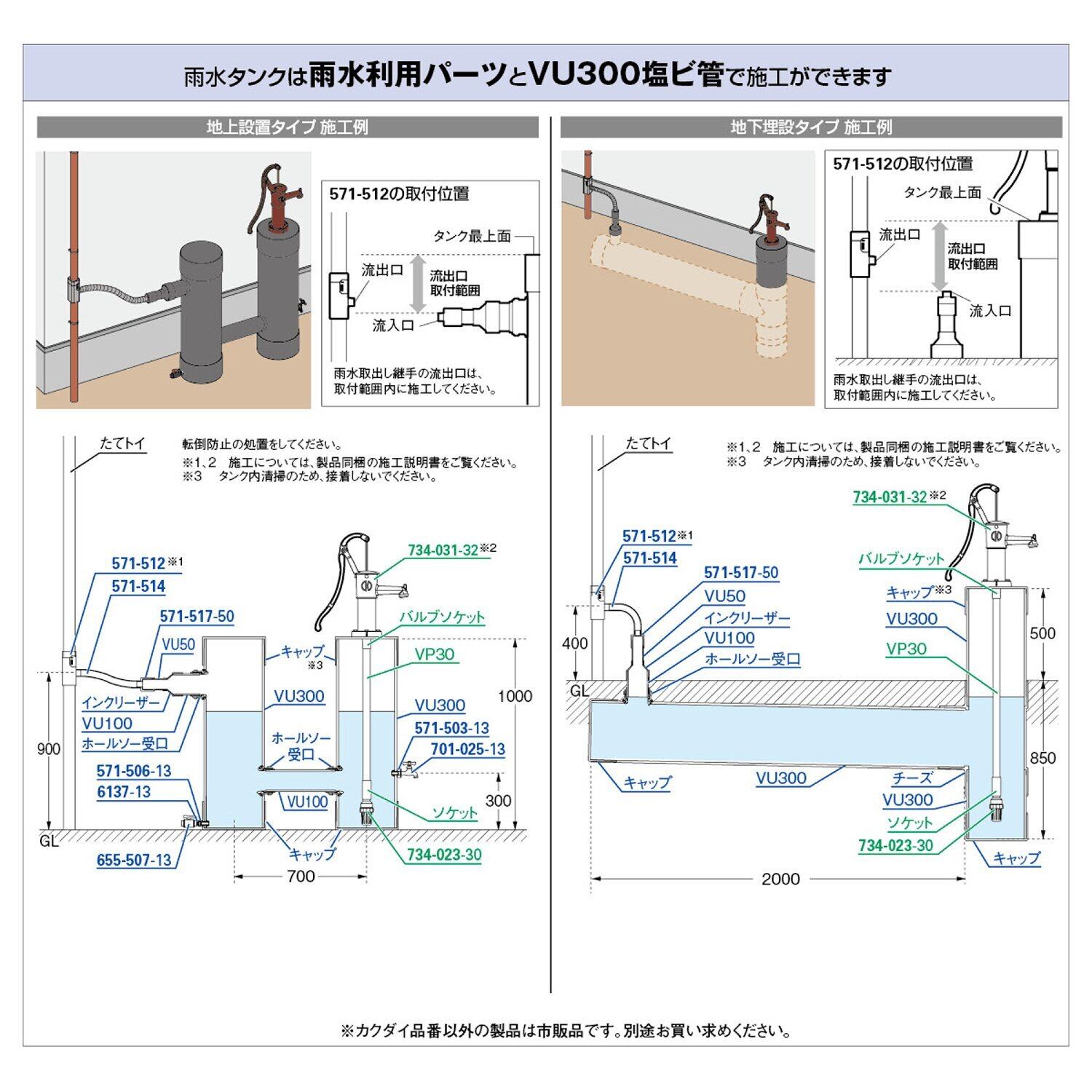 カクダイ 屋外用 取付簡単 便利 エコ 雨水活用 雨水取出し継手 丸・角トイ兼用 571-512