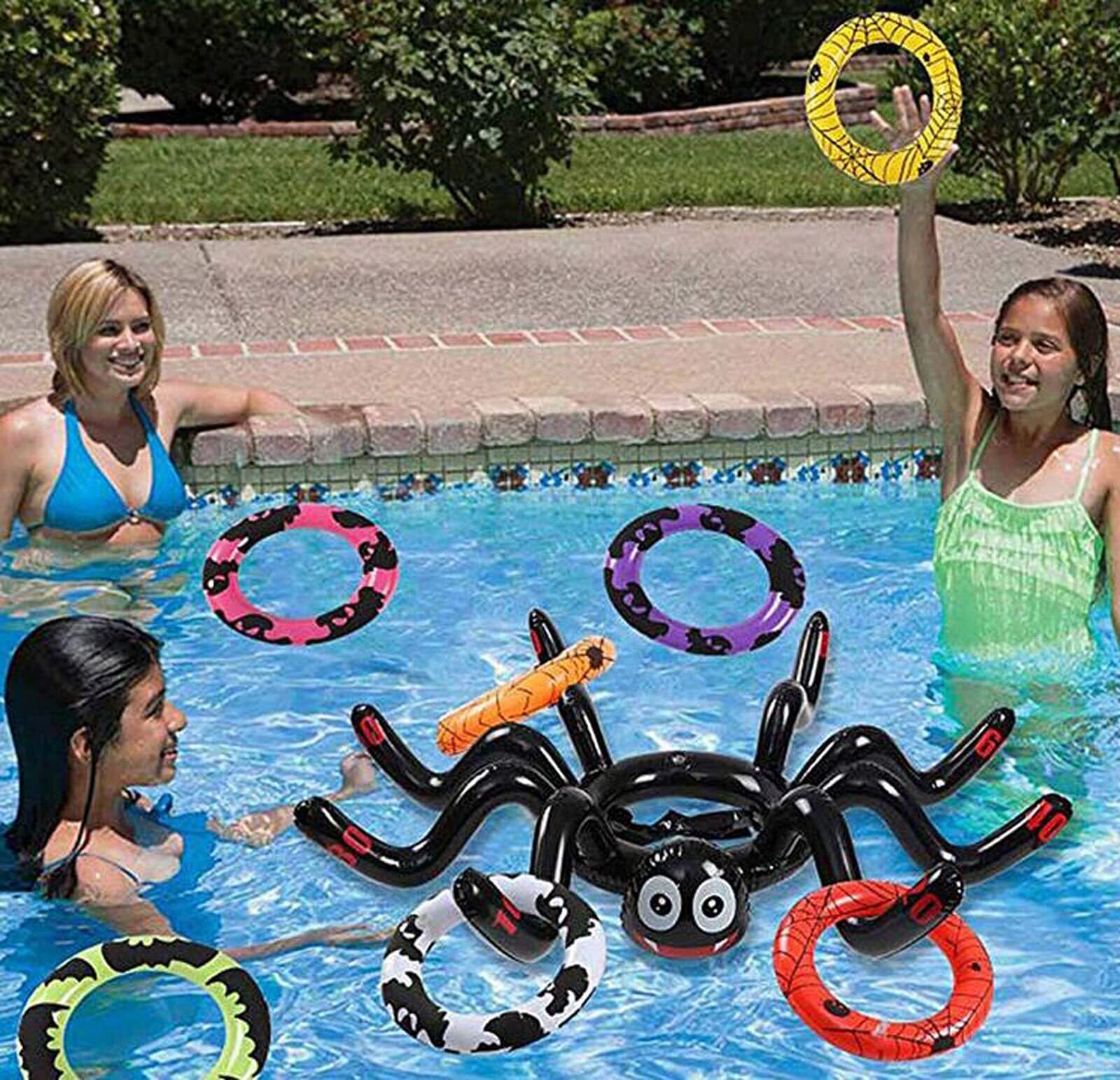 楽しいパーティーゲーム: 空気注入式スパイダーリングトスゲームで、楽しいスポーツパーティーや学校のカーニバルを楽しましょう。 屋内屋外のパーティーやアクティビティに最適です。地面やプールでの使用にも適しています。イベントの雰囲気を盛り上げます。また、家を飾るオーナメントとしても、多様性を加えています。