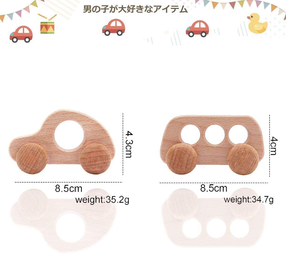 Promise Babe 木製おもちゃ 赤ちゃんのおもちゃ ミニカー バス 2点セット ブナの木 天然木 無塗装 押し車 玩具 出産祝い ギフト 新生児贈り物 プレゼント