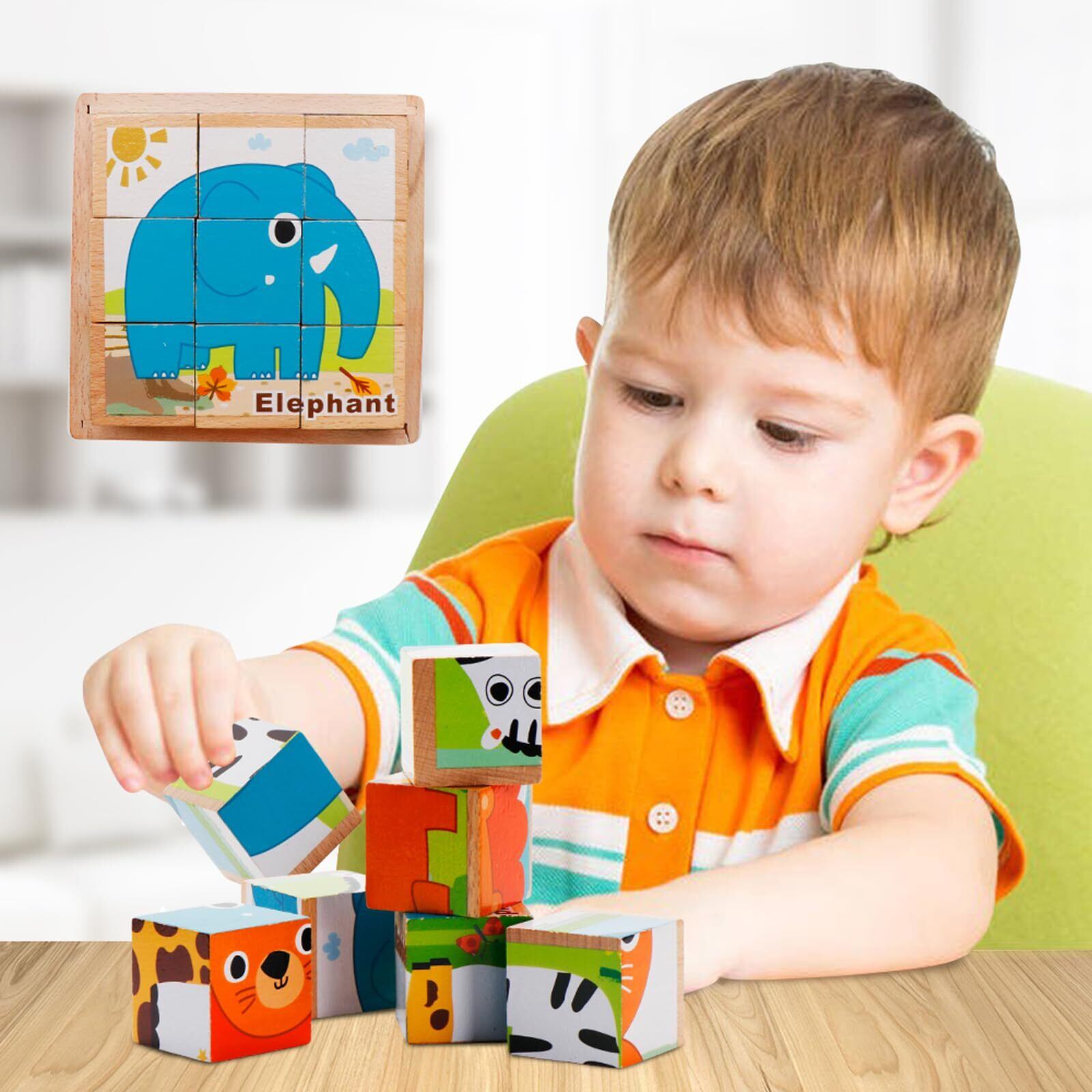【2022最新】キューブパズル 3D立体パズル 木製 積み木 アニマル 9コマ 子供向け 知育玩具 動物6種類 ライオン ジラフ ウサギ シマウマ 象 トラ 形合わせ 木のおもちゃ 男の子 女の子 教具 1歳 2歳 3歳 4歳 5歳 6歳 赤ちゃん ベビー 出産祝い 保育園 誕生日プレゼント 組み立て 早期開発 オモチャ