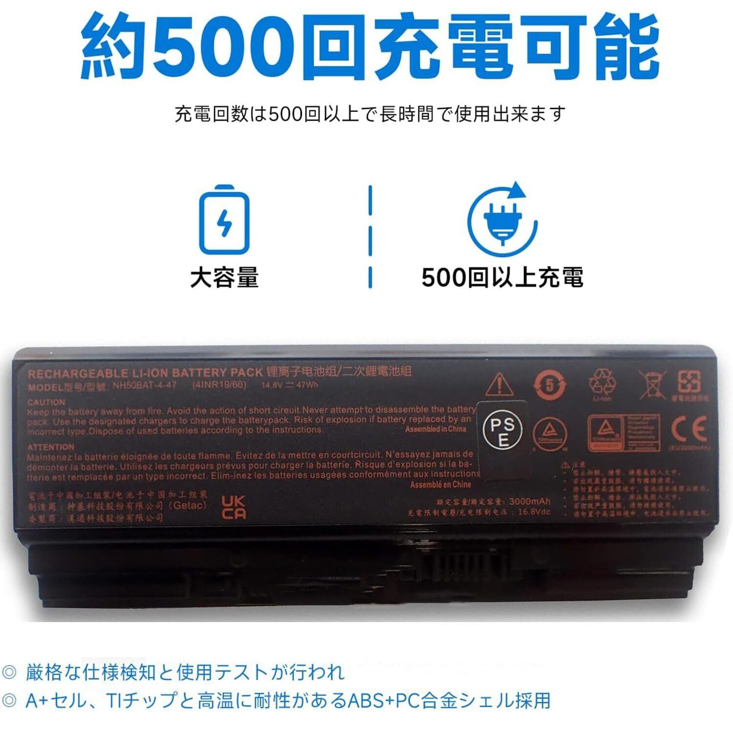 ️弊店の互換バッテリーは、日本PSE(電気用品安全法)、RoHS、CE、FCC、ULなどの国際基準を達成するために、厳格な品質手順をパスしました。100%互換可。予備または二次バッテリーとしての使用に最適です。