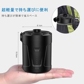 【強力携帯式エアーポンプ&軽量】動エアーポンプのサイズはミニですが、強力な吸引力を持っています。本体重量は約369g,コンパクトだけど風密度400L/分と強力で、インフレーターマットなどの空気入れ/空気抜きをしっかりサポートします。 キャンプ、アウトドアでこれがあれば準備が楽ちんです。