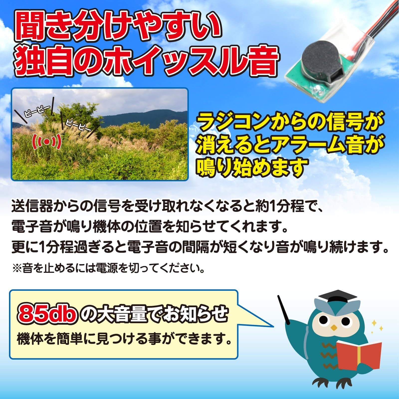 ︎紛失防止、ラジコン用機体発見ブザー(5個セット)。操縦を誤り、草原や茂み等に墜落させてしまい中々機体を見つけられなかった時に電子ブザーが鳴り機体発見の手助けをしてくれます。