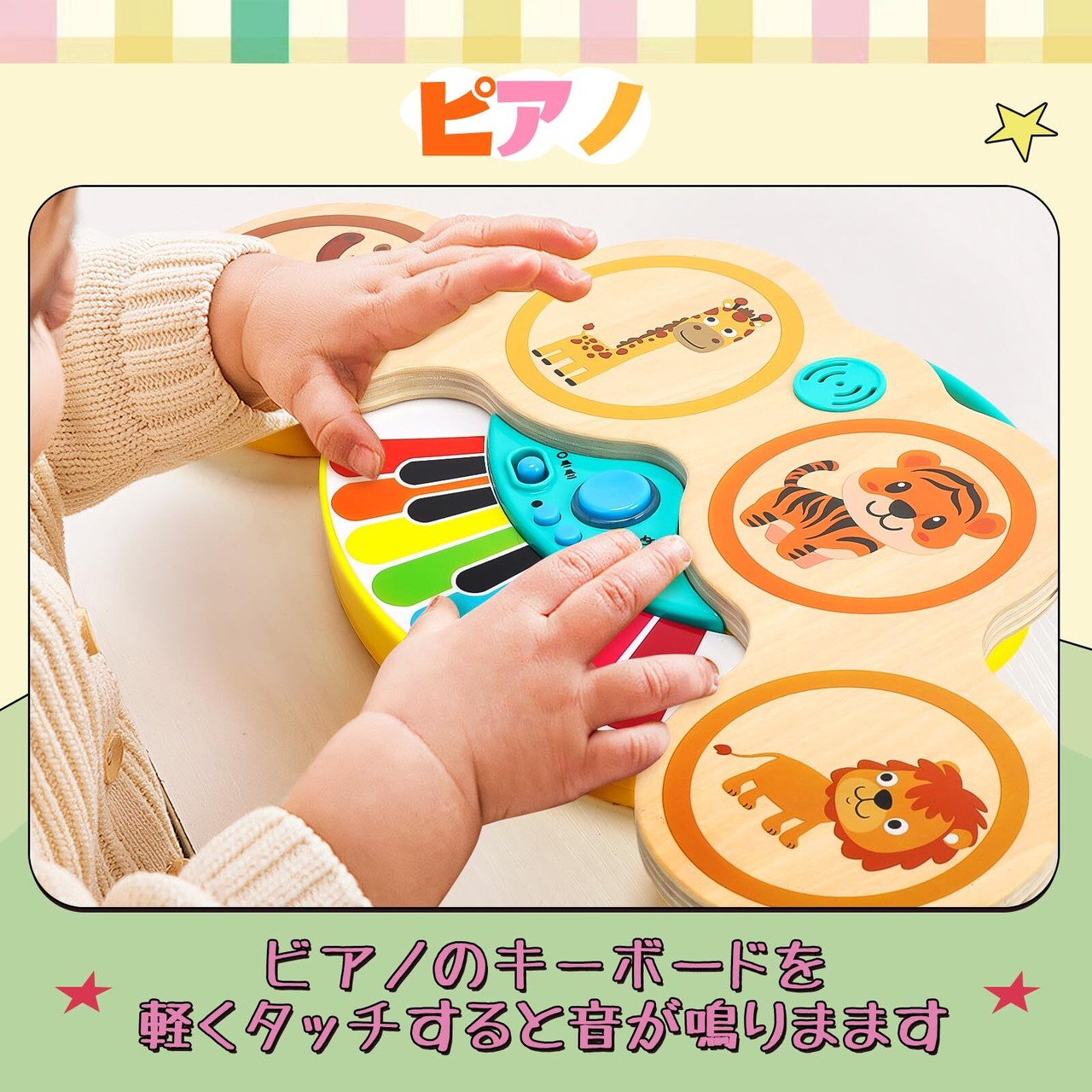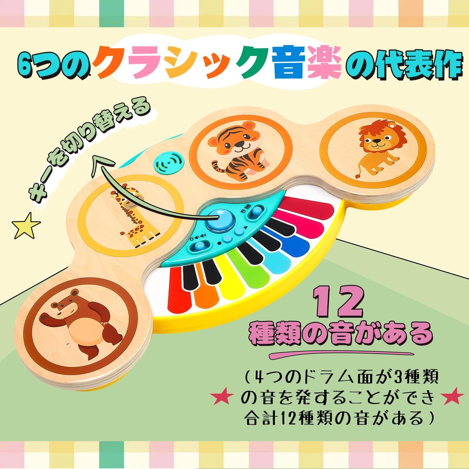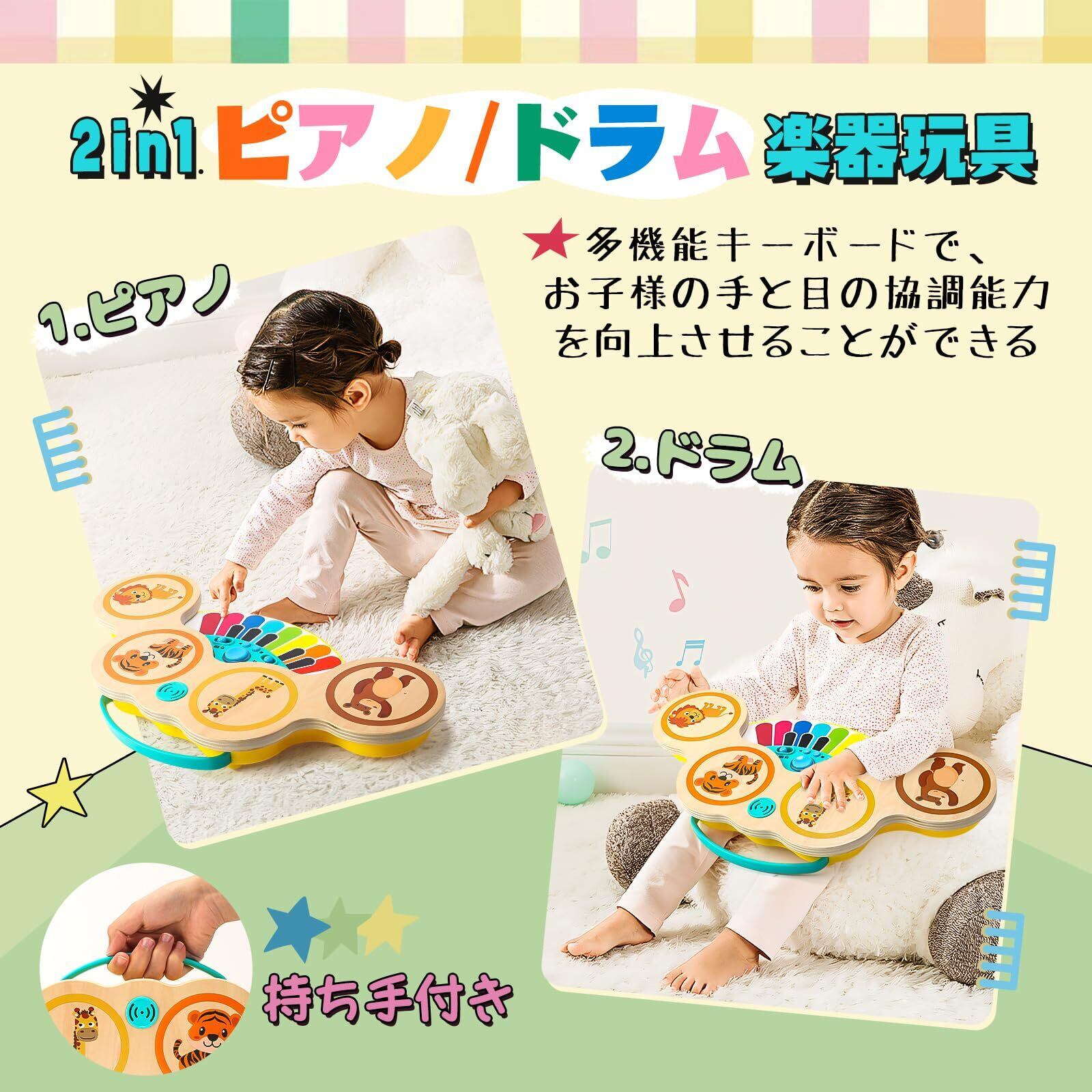 【2in1ピアノおもちゃ】この楽器はドラムとピアノキーボードを組み合わせたものです。木製のドラムフェイスは、触れると心地よい感触があり、子供の小さな手にも適しています。さらに、ドラムとピアノのキーを一緒に演奏して、子供の創造力を発揮することができます。演奏の楽しさも倍増します。