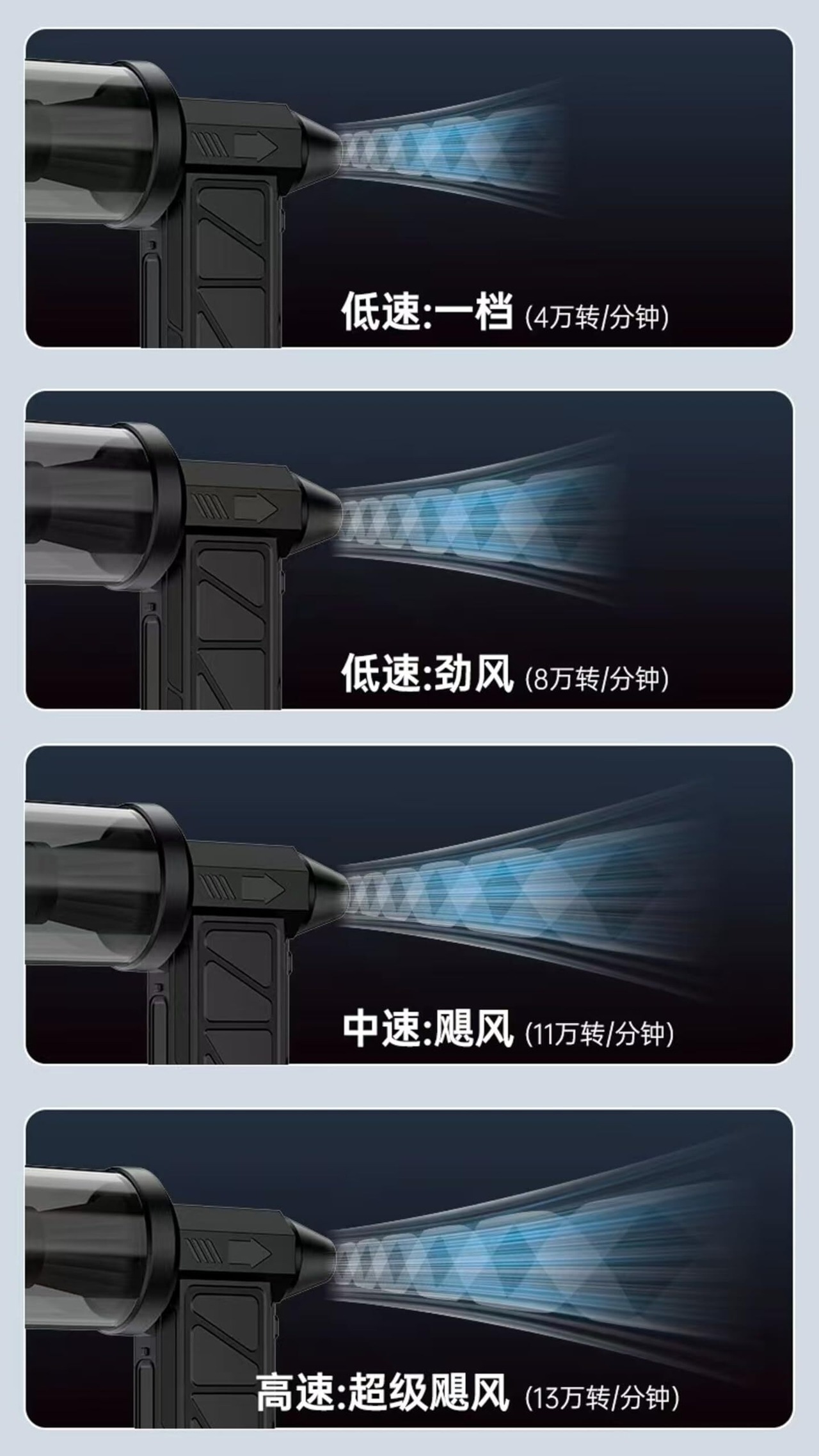 二、 新しい強力なブラシレスモーター技術を採用し、風速は52メートル/秒に達します。最高回転速度は130000RPMで。落ち葉の掃除はもちろん、砂ぼこりや水、雪を吹き飛ばすのにも便利です。細かい隙間にある砂や水は、ホウキで掃ききれず残ってしまいがちですが、ブロワーを使用すれば一瞬で吹き飛ばすことができます。駐車場のアスファルトの細かい隙間、玄関のタイル、窓のサッシなどの清掃も効率的に行えます。