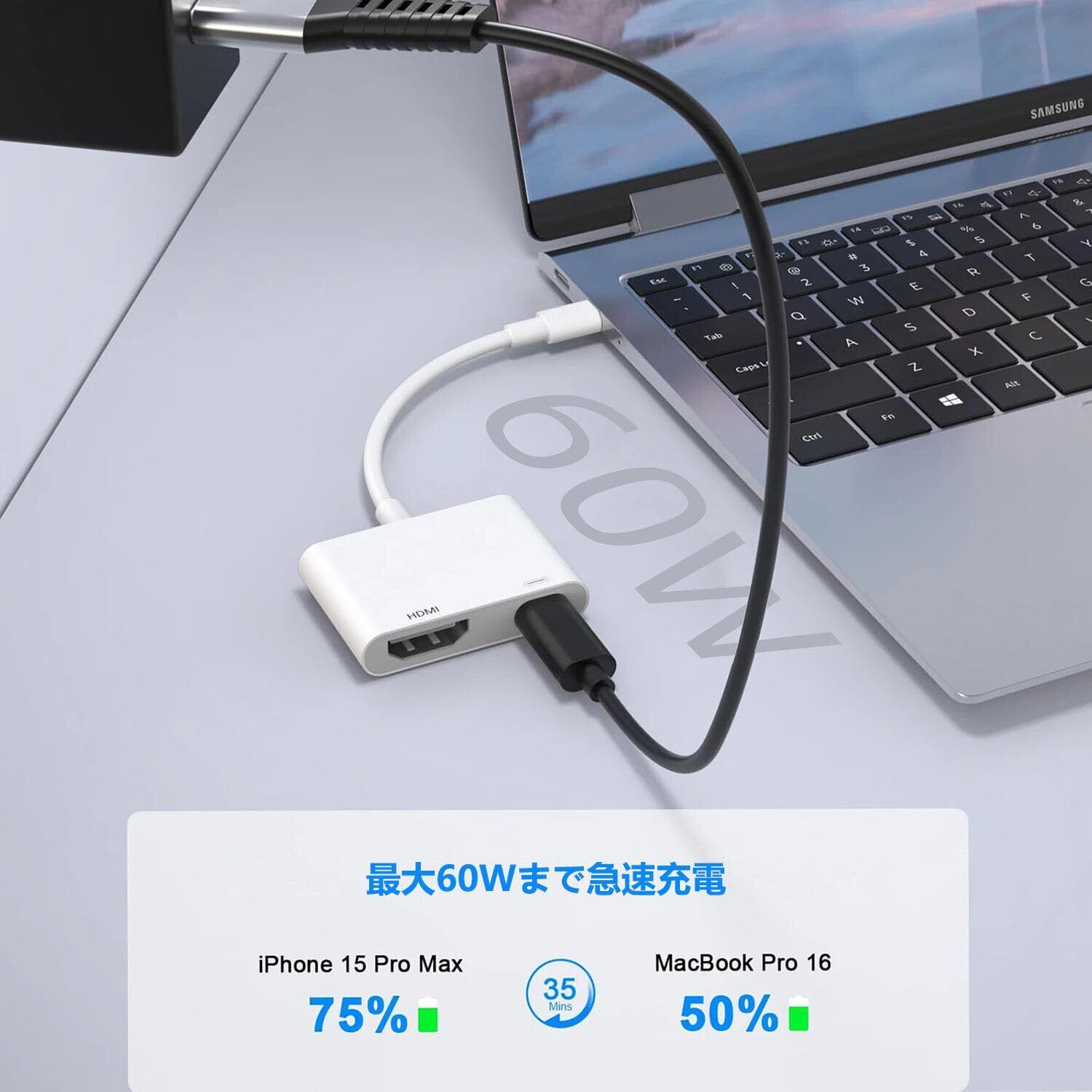 「大人気の2-in-1 HDMI Type-C 変換アダプタ」:2-in-1 HDMI Type-C 変換アダプタは、USB-Cポートを搭載したPCまたはスマホをHDMIディスプレイに接続しながら、同時に標準的なUSB-C充電ポートも備えている。映画の視聴、ビデオ編集、会議プレゼンなど、優れたビジュアル体験を提供します。