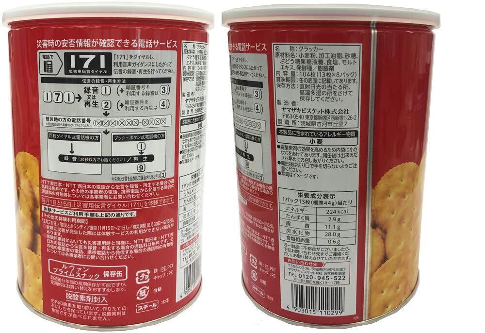 クッとした食感と香ばしさが特徴のクラッカー。賞味期限5年以上の長期保存が可能で災害時の保存食として適しています。13枚×8パックの大容量缶は他社にない充実の内容量です。パッケージに災害伝言ダイヤル『171』を記載しています。災害時の非常食として受け入れられている缶タイプのクラッカーをルヴァンプライムスナックで展開します。ブランドの認知向上とクラッカーの食シーンの広がりを継続的に行うことを目的としています。