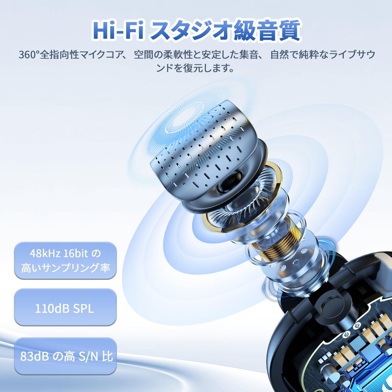 【最大20時間のバッテリー駆動時間】1000mAh充電ケースバッテリー内蔵され、70mAhマイクバッテリーが内蔵され、約5時間使用でき、マイクを3 回充電できます、充電ケースと合わせて最大20時間まで使用できます。